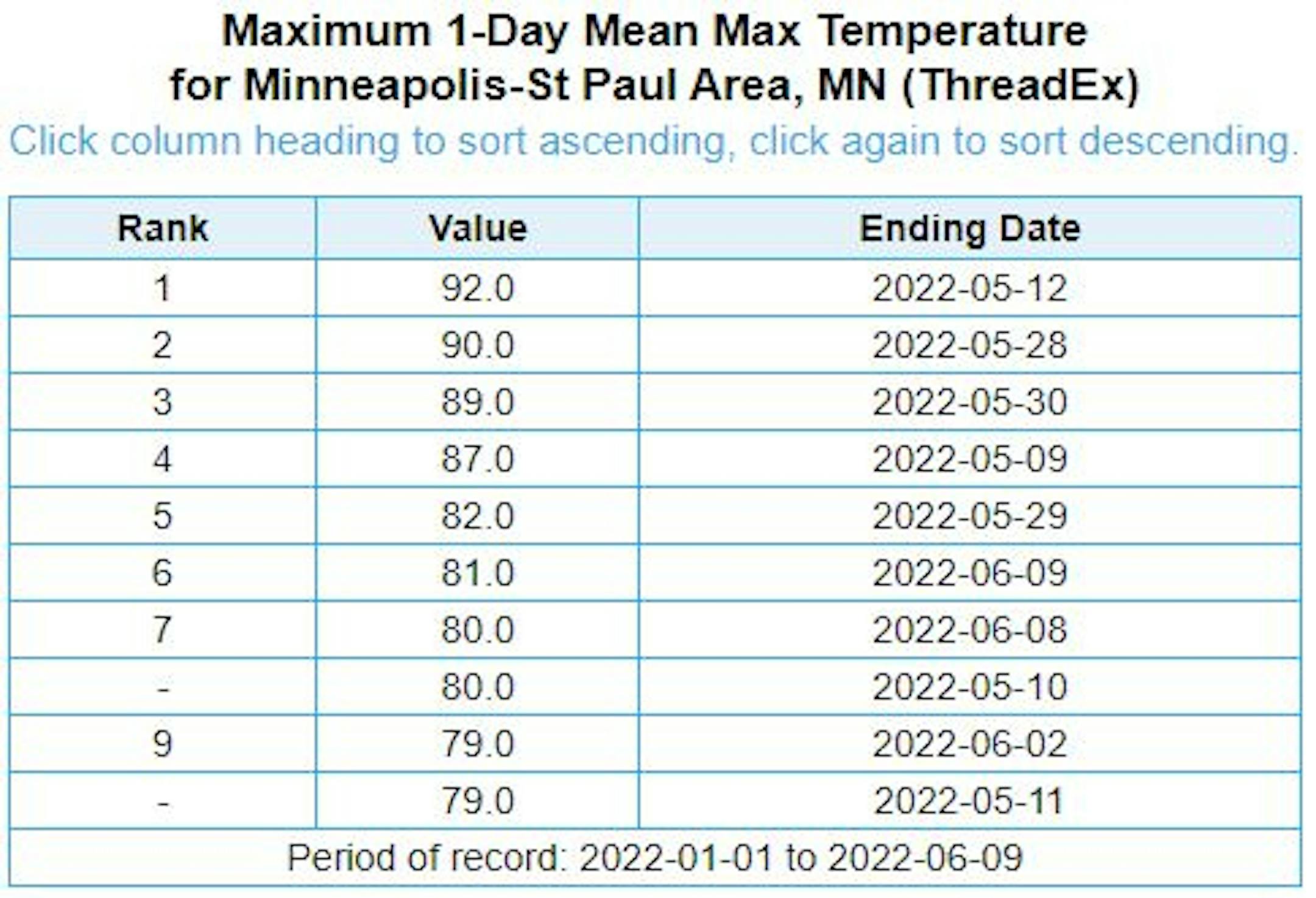 Top 10 Hottest Day of 2022 So Far in Minneapolis