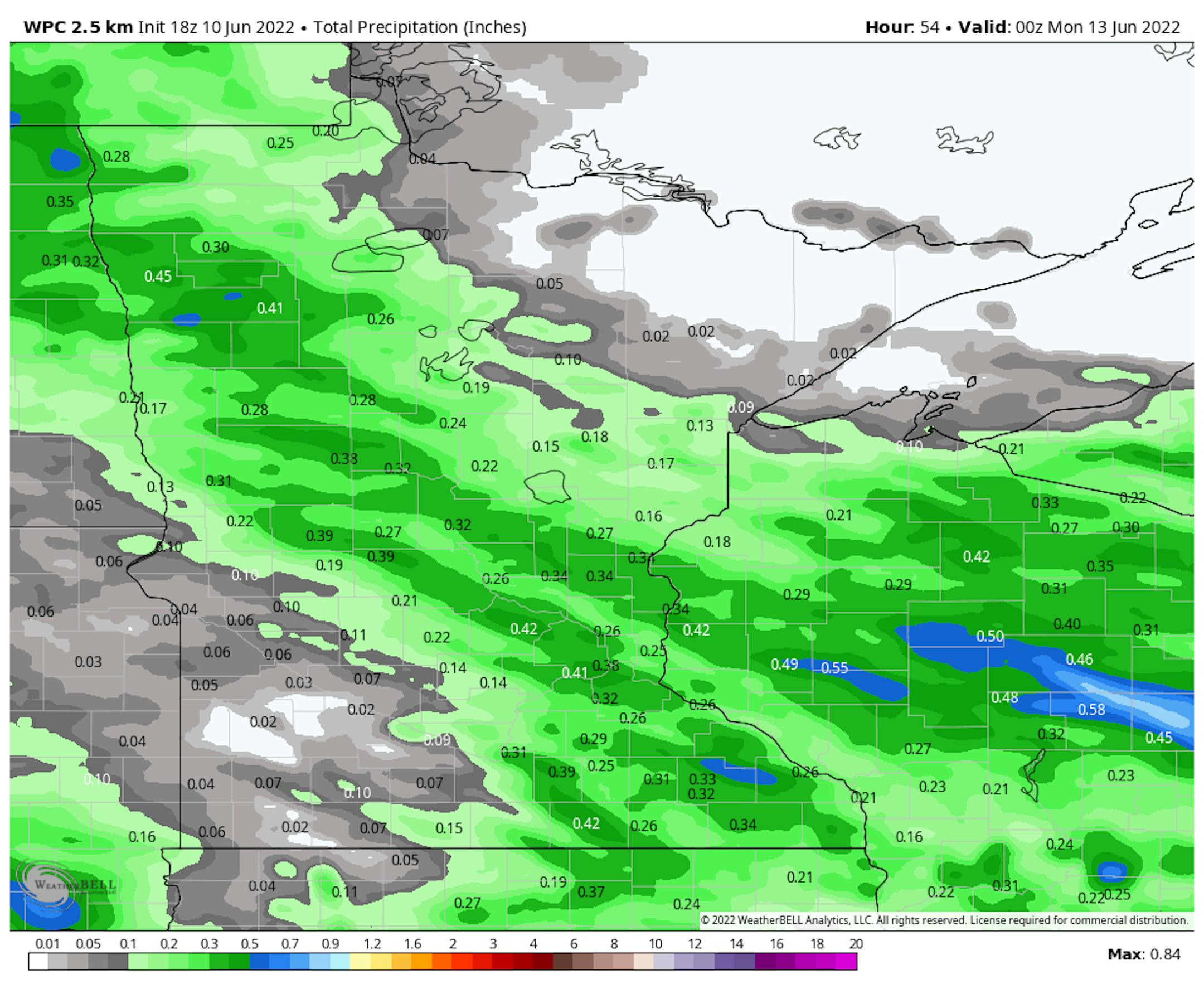 Here's the weekend rainfall potential, which suggests a few hundredths of an inch of rain across parts of central Minnesota. Most of the rain will move through during the first half of Saturday.