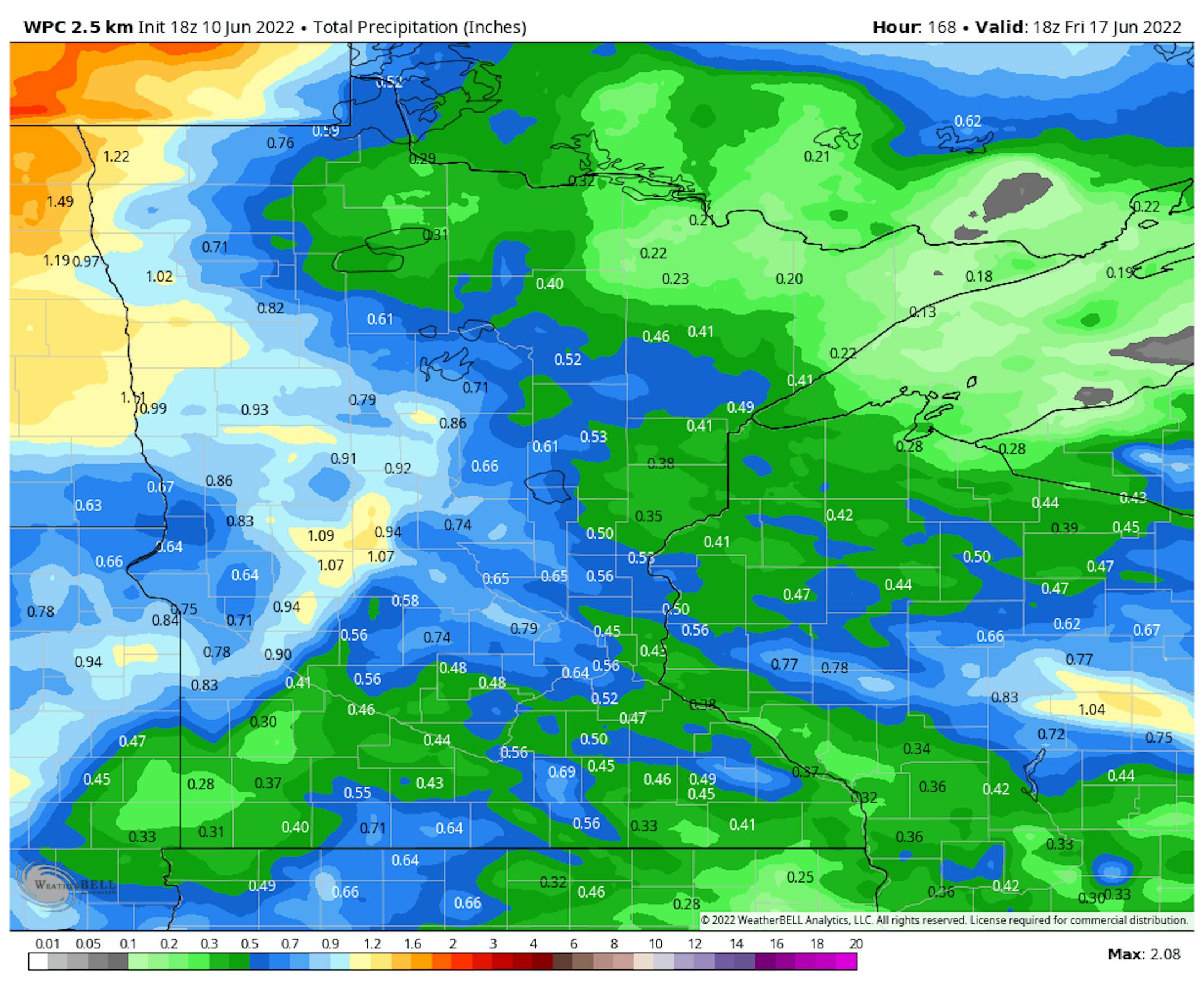 Here's the extended precipitation outlook through the end of next week. There will be a few chances of showers and storms through the middle part of next week. Some locations could see up to nearly 1" of rain across western Minnesota.