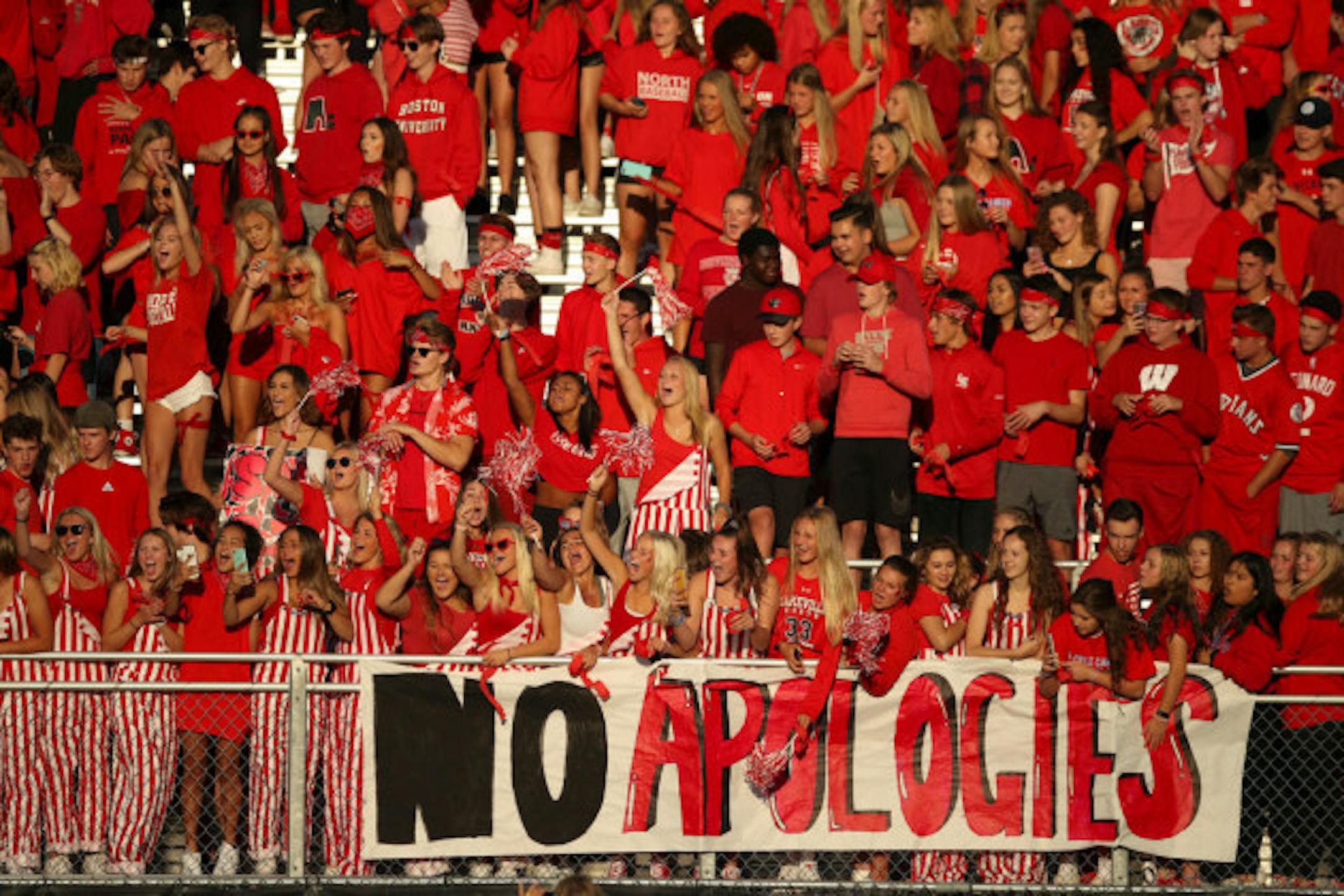 "No" in black, "Apologies" in red. The large banner hanging in front of Lakeville North's student section before last Thursday's football game at Woodbury was hard to miss.