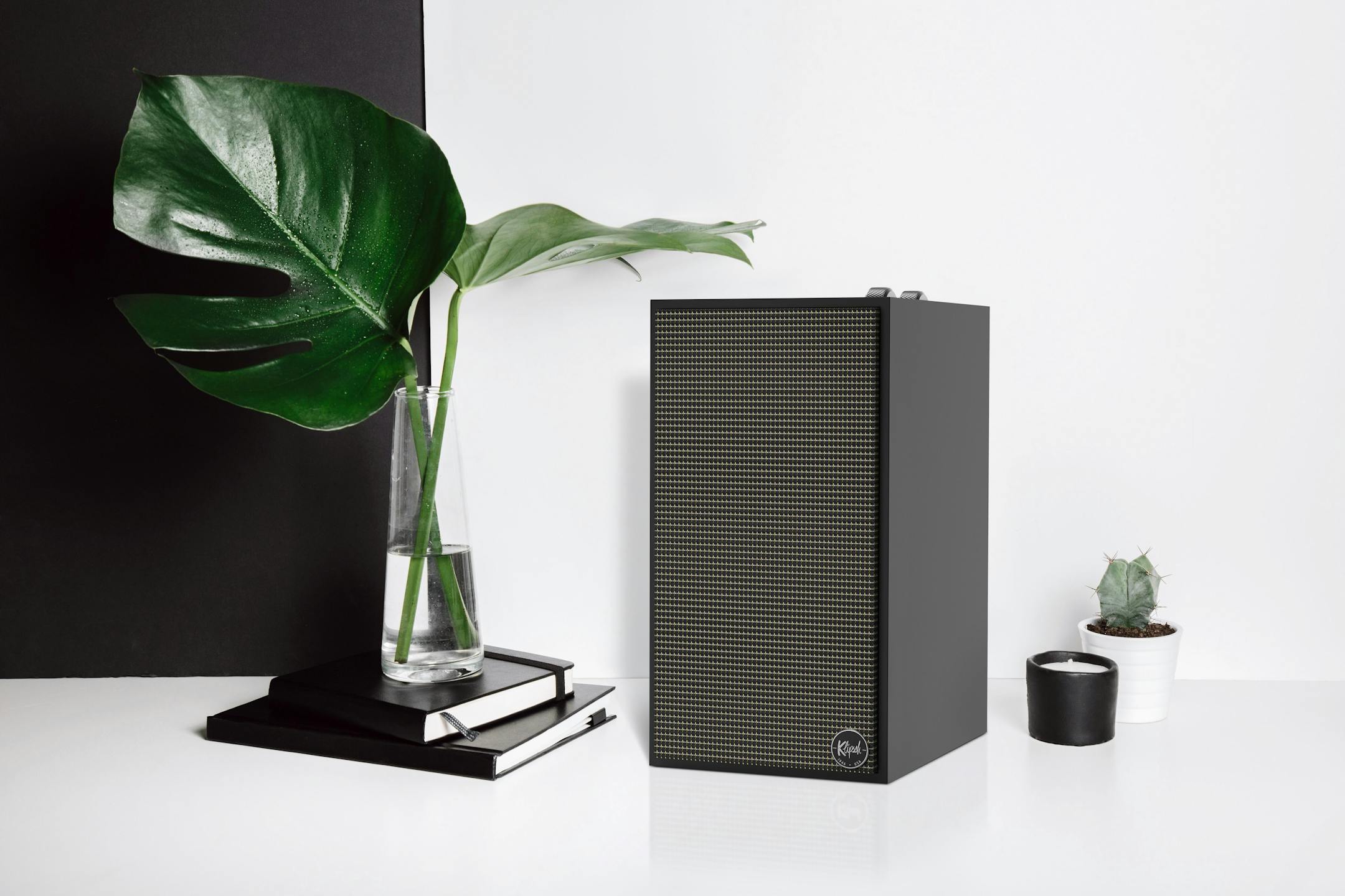 I love the warm, classic look of Klipsch vintage wood finishes, but at almost 50% off you can happily sign me up for basic black. They sound their best on speaker stands. You can find suitable stands for under $100 a pair. (klipsch.com)