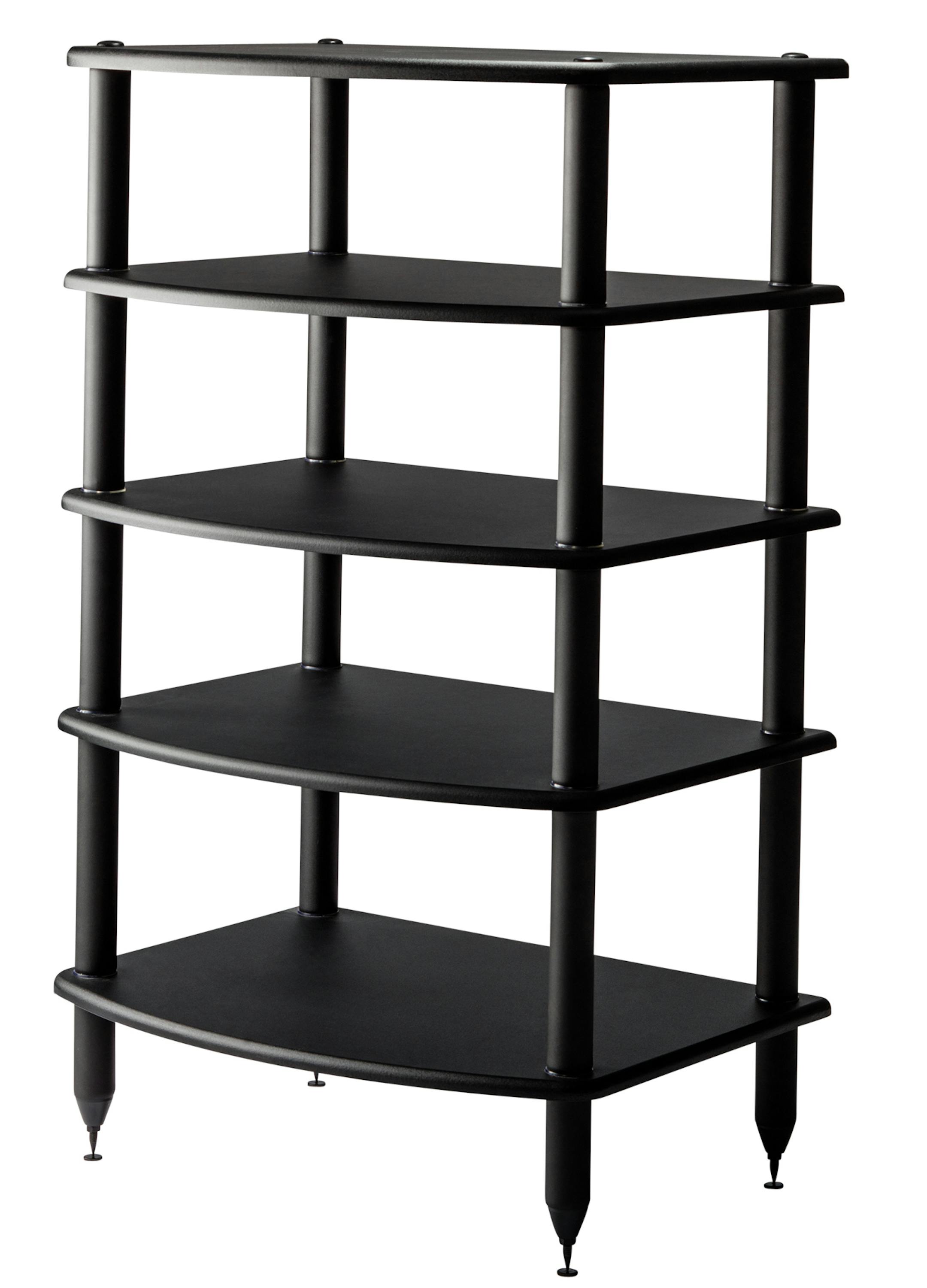 The Vulcan Four Shelf Audio Rack (pangeaaudio.com) is a new offering from Pangea Audio, available in carbon fiber vinyl, black, rosenut and espresso finishes. It is easy to assemble, looks good, feels solid and makes connecting and using your equipment a breeze. It sells for $149.95 in the four-shelf version and $199.95 in the five-shelf version. The four shelves would be enough for your current system, but you might want to get the five-shelf version so you have room to expand.