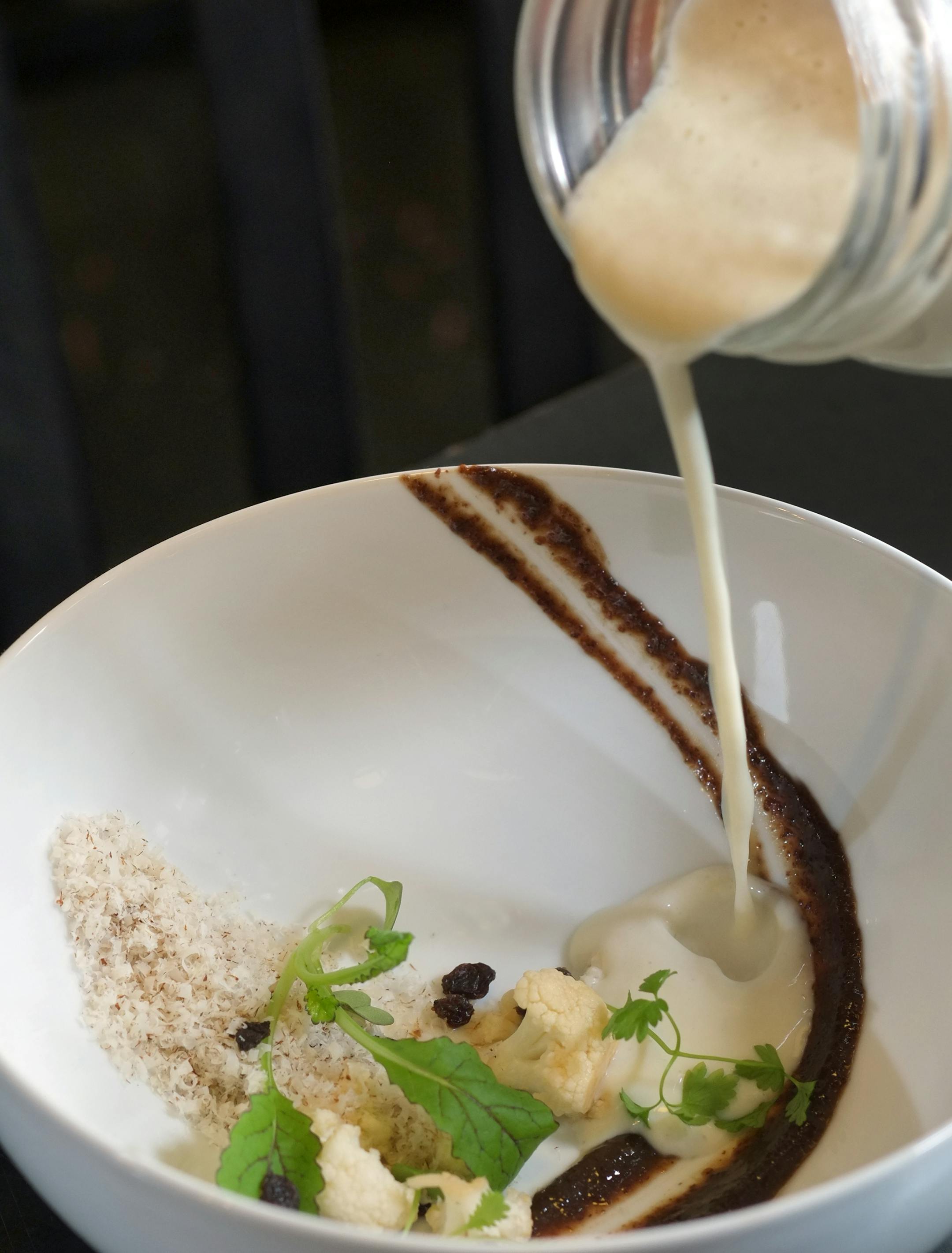 One don't-miss item on the newly rolled-out lunch menu at Rustica — a collaboration with Victory 44's Erick Harcey — is chef Jen Farni's spectacular cream of cauliflower soup ($8). "I wanted to use components that the bakery already had on hand," she said, which explains why a deep bowl arrives with shaved hazelnuts and a painterly swoosh of puréed currants enhanced with clove and cinnamon. Pickled cauliflower florets round out the cleverly crunchy-chewy-sweet-tangy garnish, then comes the big finish: that silken soup, dramatically poured from a glass jar. It's as gorgeous as it is delicious, and it sets a pretty lofty standard for Farni's soon-to-come dinner menu.