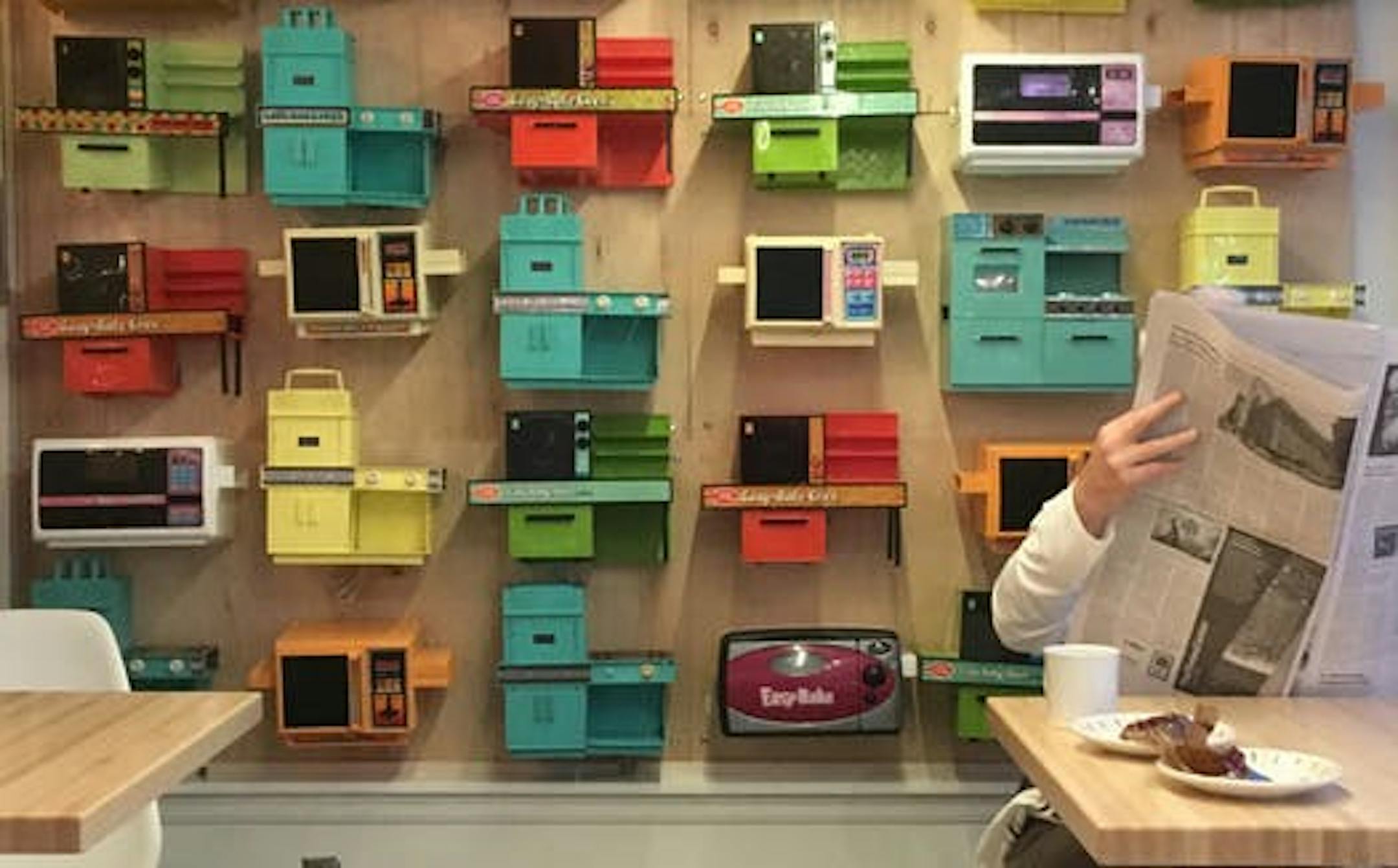 As child, Dirk kept her Easy-Bake Oven very, very busy, and she cleverly channeled that happy memory into a memorable and much-photographed social media image: a colorful wall of 50-plus Easy-Bake Ovens.