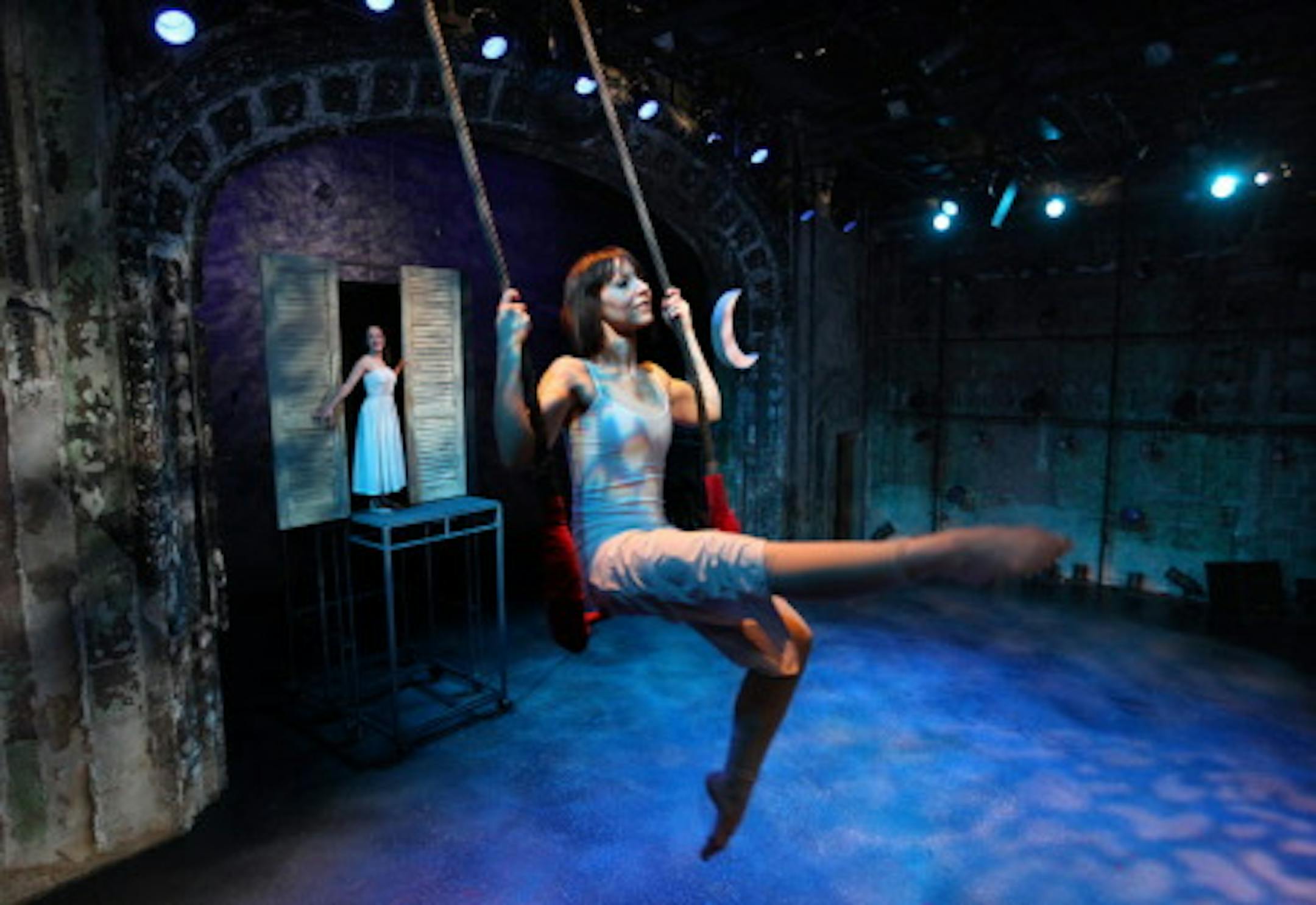 Heather Haugen, on trapeze, in a Theatre Latte Da show at the Southern Theater in 2009. / Star Tribune photo by Tom Wallace.