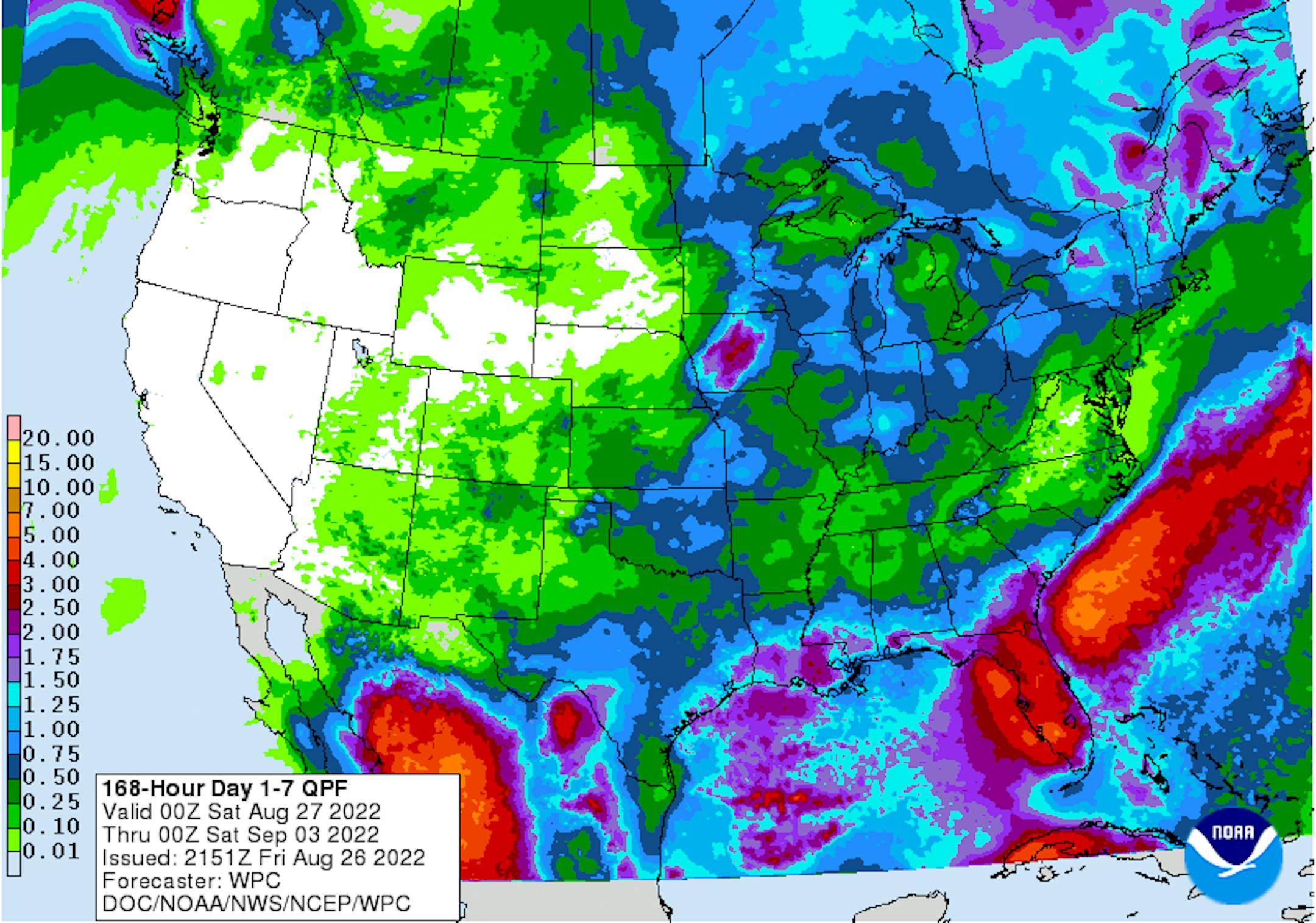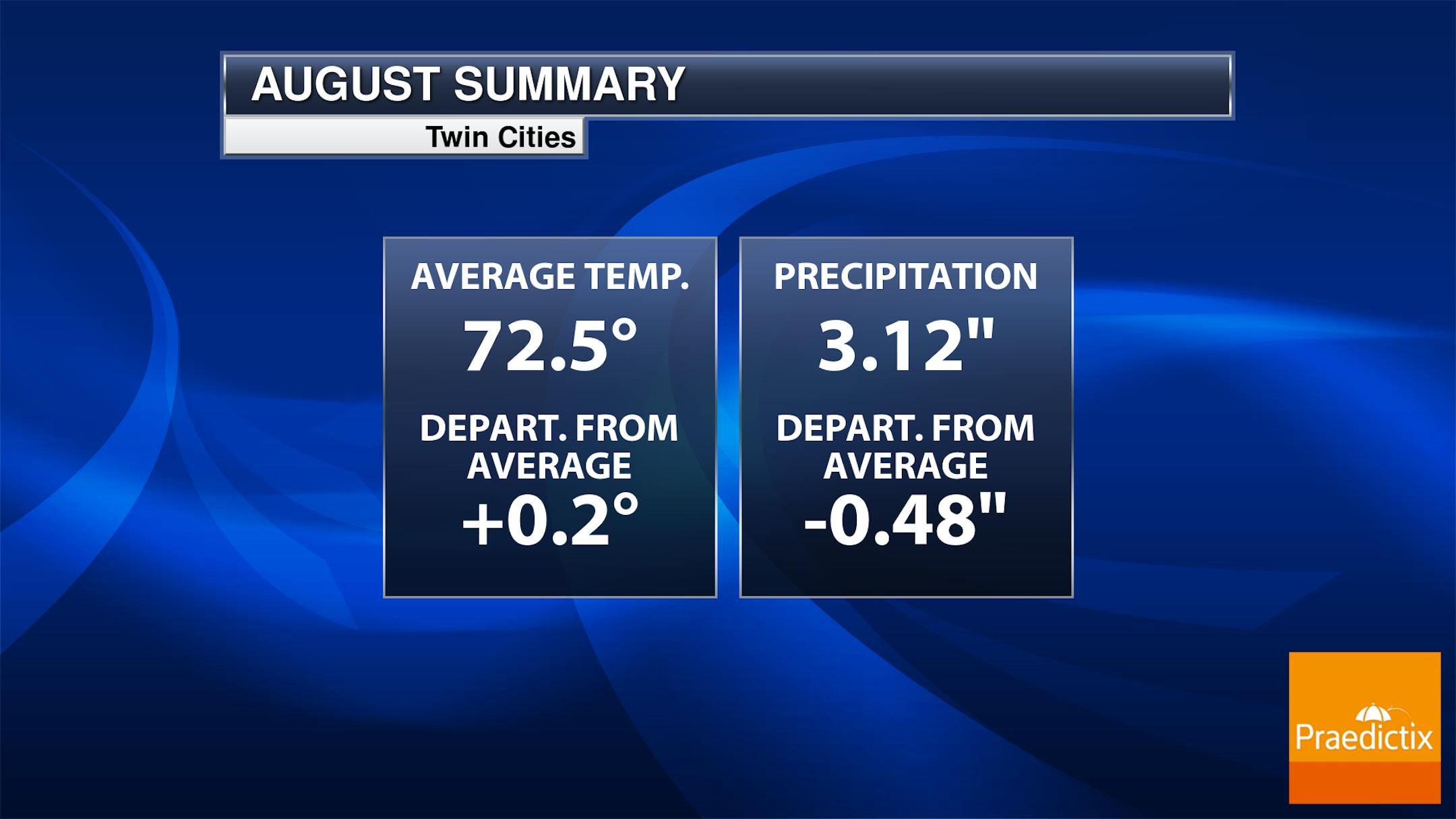 The first half of the month was hot and dry, but things have been a little cooler and wetter as of late. Through the first 25 days of August, temperatures are running just slightly above average and we're now running nearly -0.50" below average in the precipitation department.