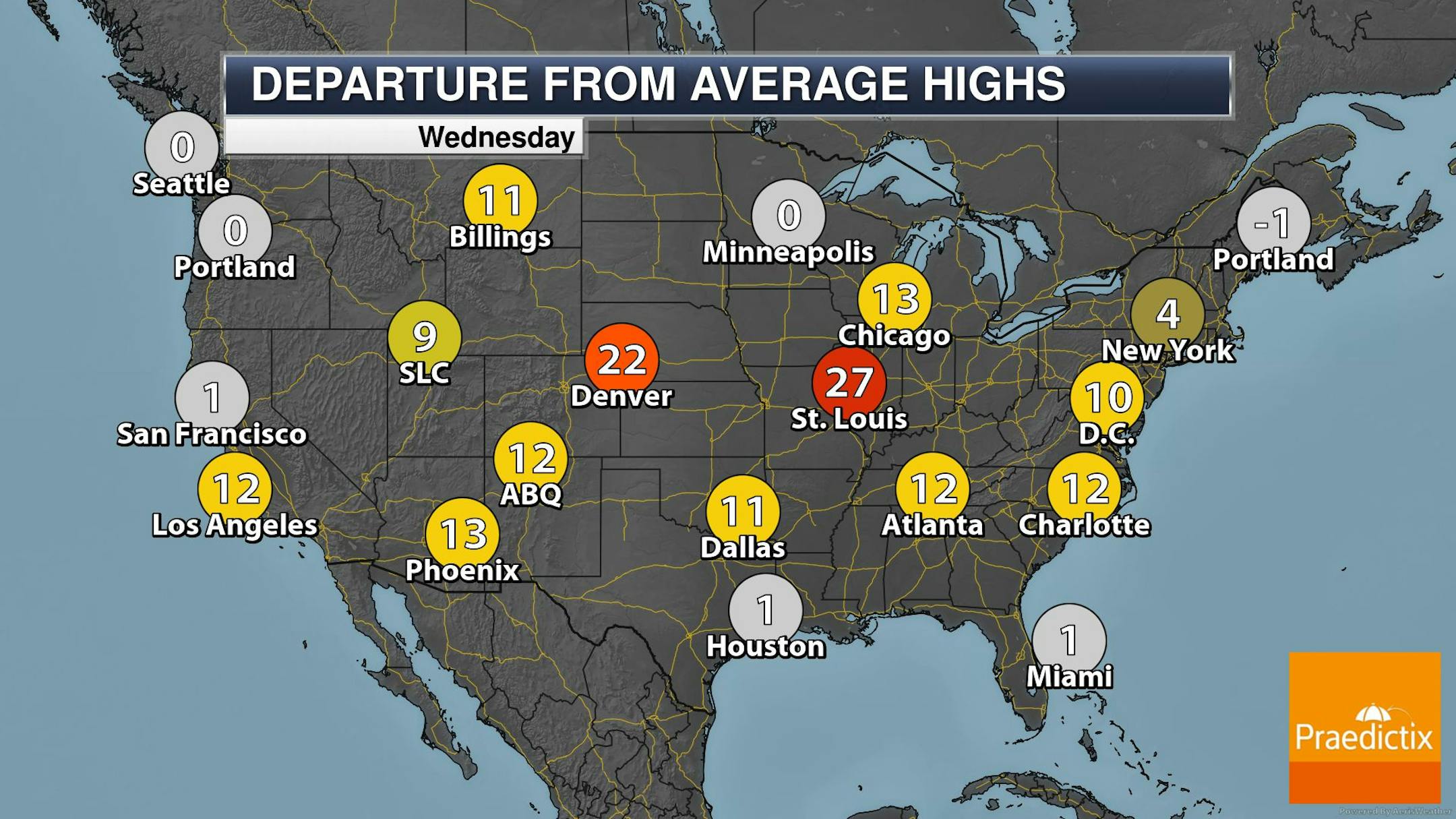 Wednesday temperatures will be close to average across the central part of the state, but will be below average across the northern part of the state by nearly -5F to -10F below average. Temps across the southern part of the state will warm to above average levels by nearly +5F to +10F above average.