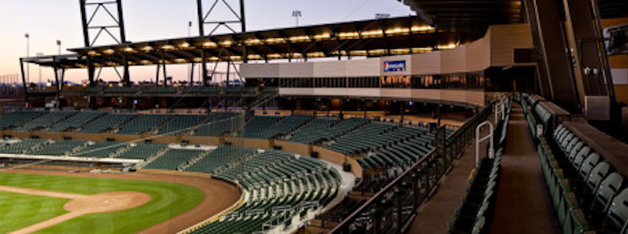 Besides the 11,000-seat stadium, which the two teams will share, there are four major league fields, eight minor-league fields and four half-fields for infield practice. There are walkways above the bullpens, where fans can lean over and watch the brand new baseballs zipping into catchers mitts.