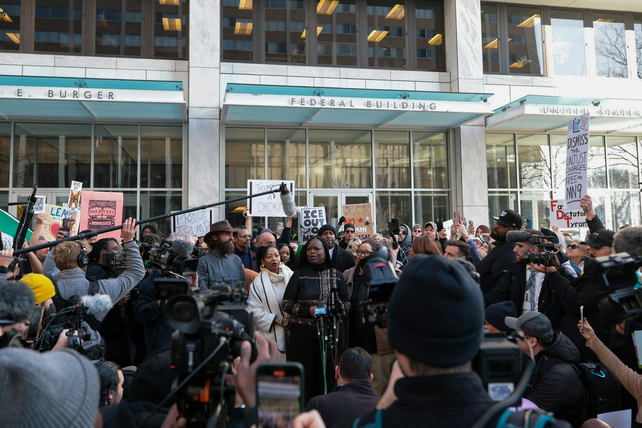 Levy Armstrong, a longtime Twin Cities civil rights attorney and activist, has been a visible presence in recent demonstrations tied to federal immigration enforcement in Minnesota. Her arrest at Cities Church drew national attention after President Donald Trump posted a doctored photo of her that appeared to show her crying. Levy Armstrong has said the image was edited and not authentic, and third-party photos and video from the scene contradict the portrayal.