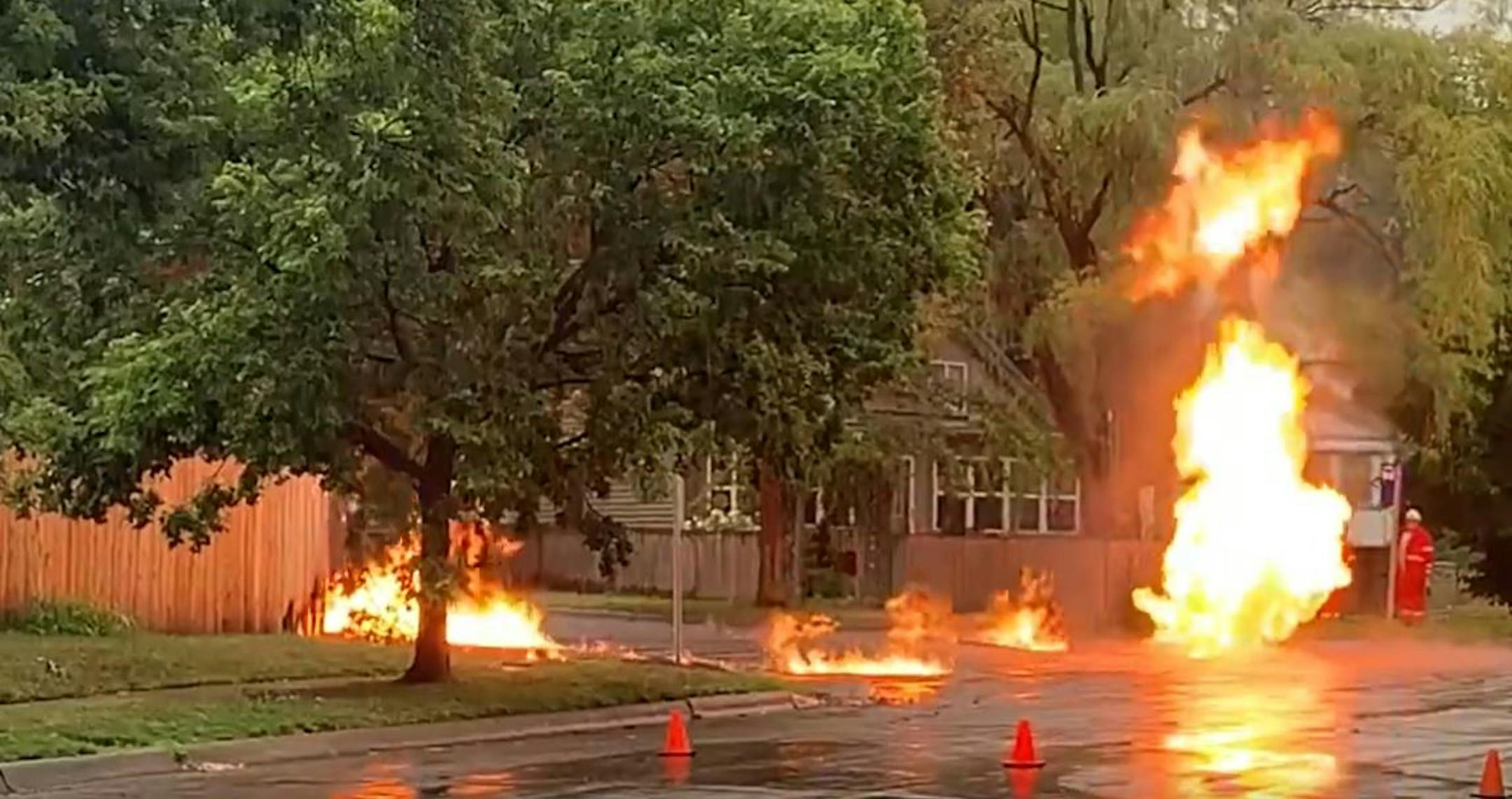 Firefighters evacuated homes at about 10:30 a.m. while they worked to put out the fire and Xcel Energy crews shut off the gas line. The fire didn't spread to nearby homes along Brainerd Avenue and Burr Street, according to St. Paul Fire Department.