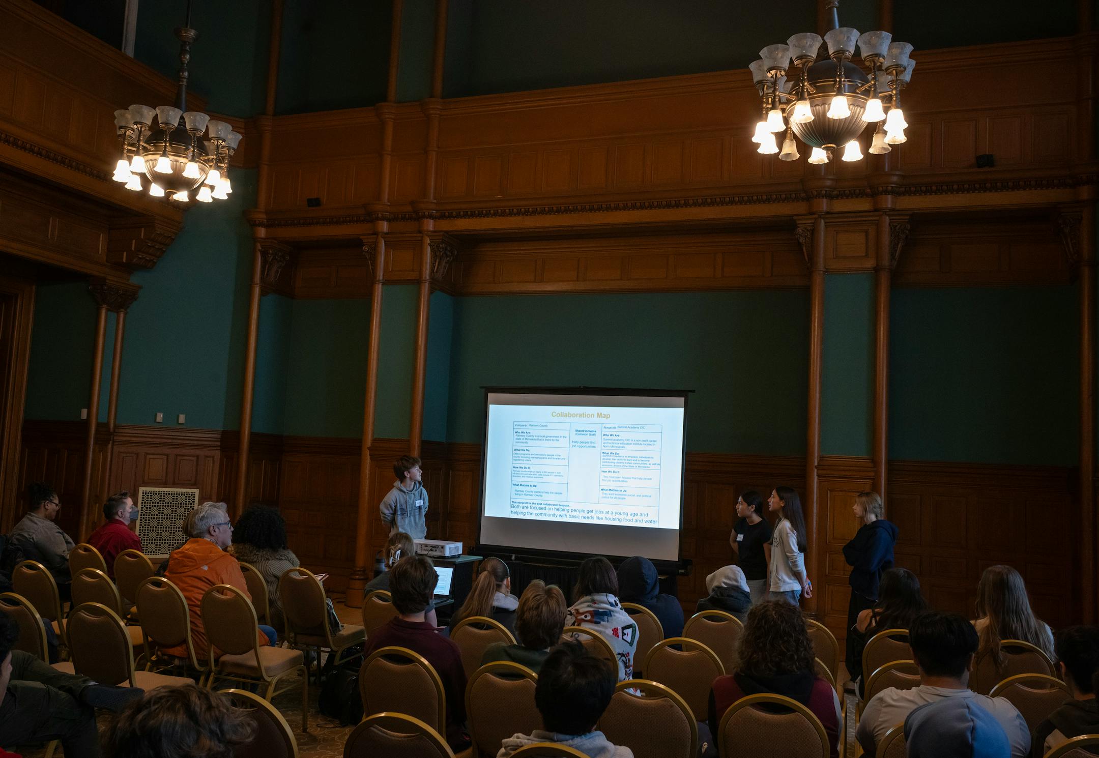 The program, now operating in three high schools in the state’s second-largest district — the only school system in Minnesota with the program — is a partnership with Junior Achievement North. Six times a year, students take on a case, and at its conclusion, present their findings, most recently at the Landmark Center downtown.