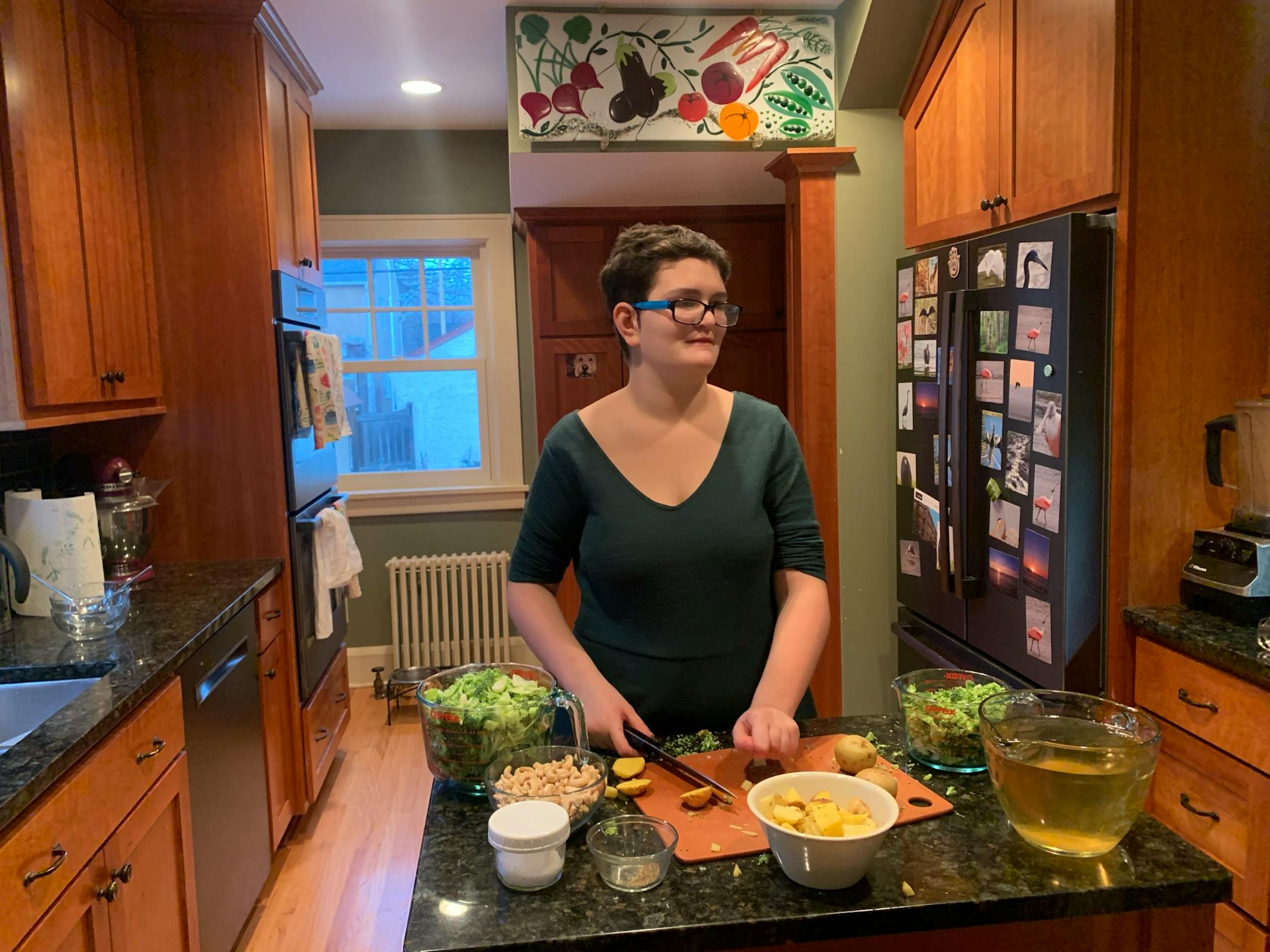 On a seasonably cold December afternoon, Netta Hardin is in her kitchen making vegan cream of broccoli soup. The recipe has six basic ingredients: broccoli, olive oil, onion, vegetable stock, russet potatoes and cashews, plus kosher salt and pepper to taste.