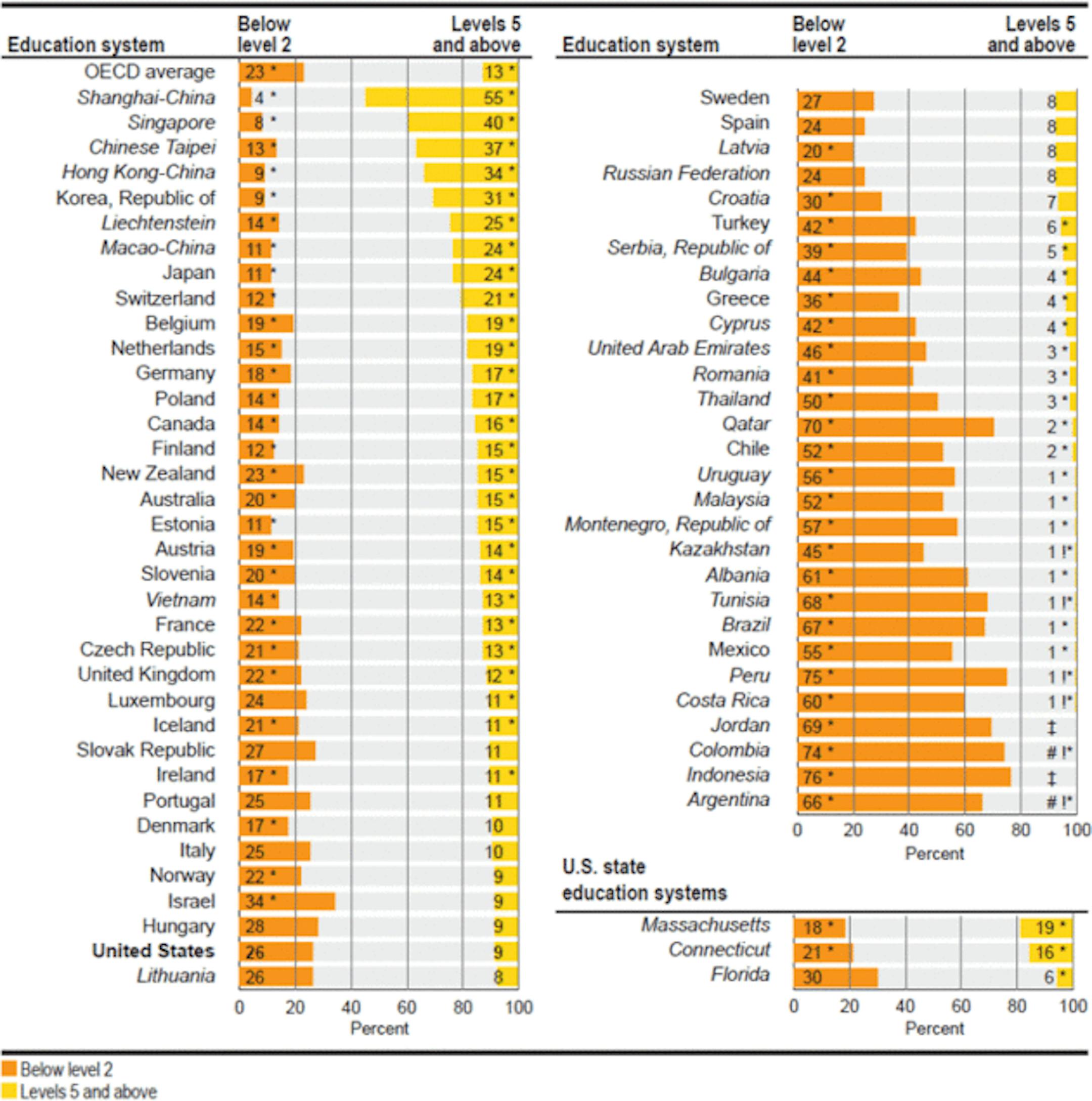 The words "stagnant", "mediocre" and "disappointing" seemed to dominate descriptions of the U.S. scores. Here's what some have to say: