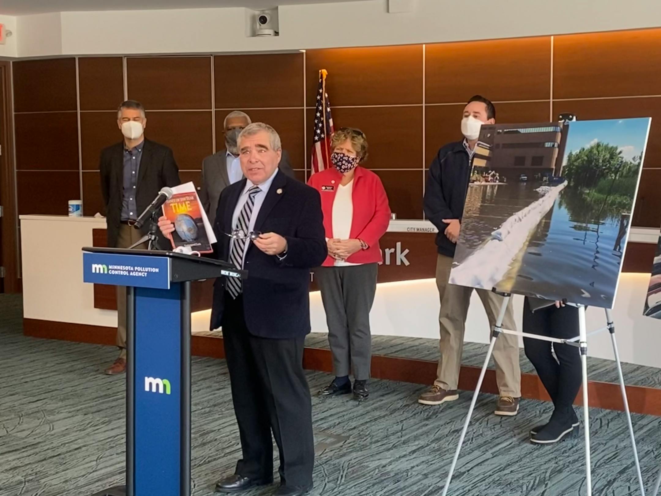 At a news conference in St. Louis Park, Pollution Control Agency Commissioner Katrina Kessler said increasingly severe rain events are overwhelming aged and undersized storm water systems. Walz's proposed program would help fund system upgrades to protect communities from extreme weather.
