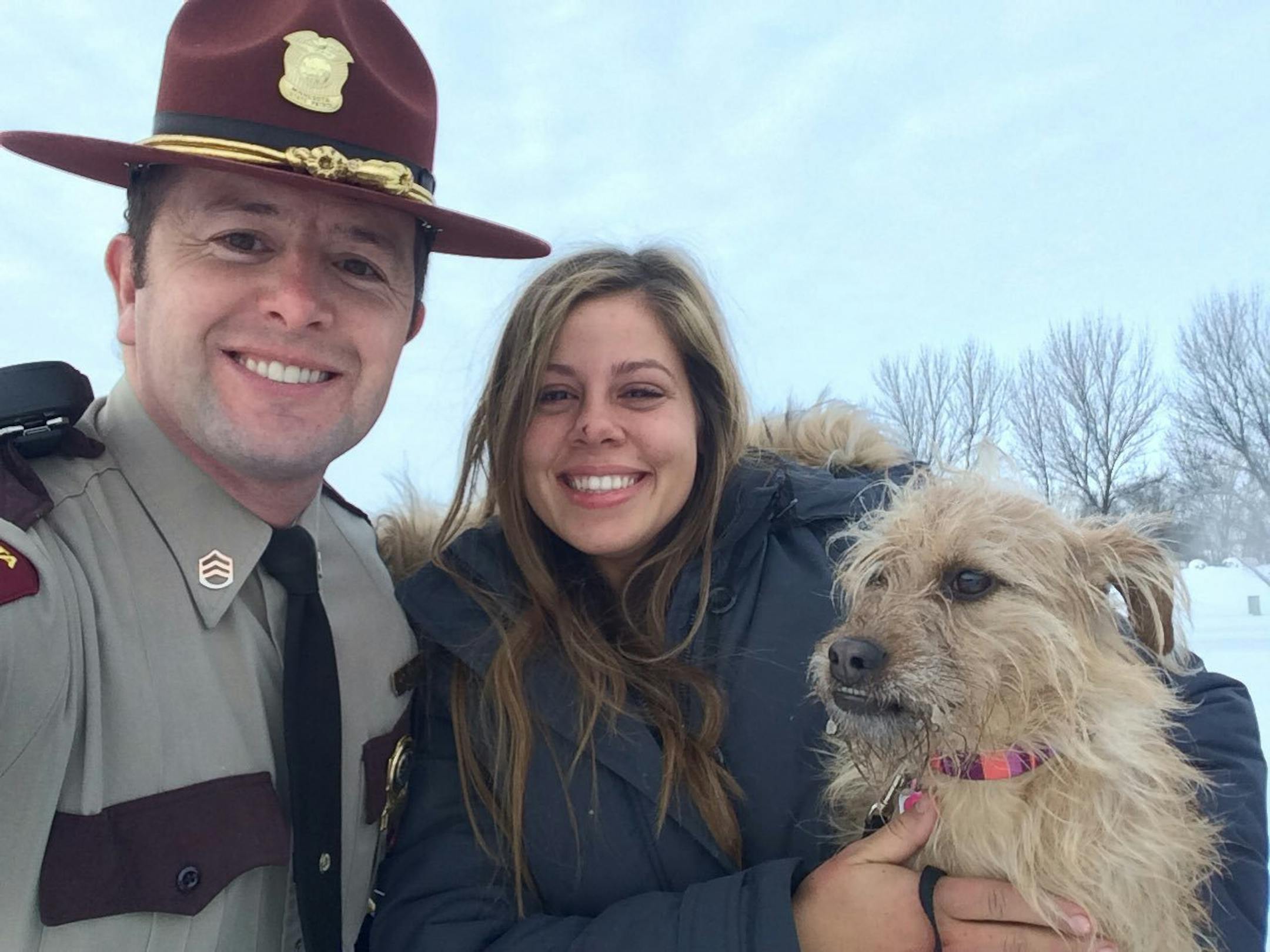 A Minnesota state trooper saved the day for a college student involved in a crash Friday morning when he found her dog after it bolted from the scene and got the two back together.