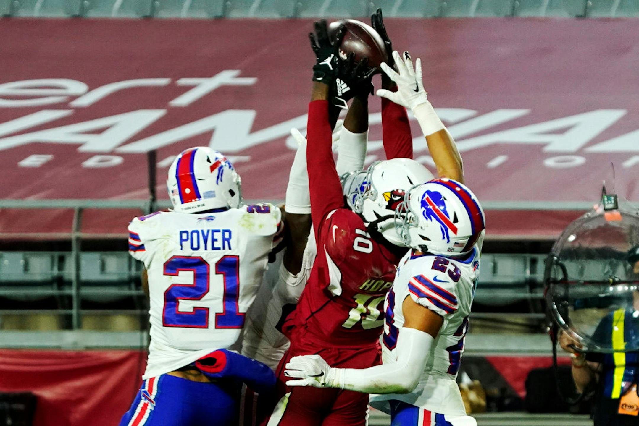 But … you probably know the rest. The Cardinals moved the ball to midfield in the closing seconds. And Kyler Murray's desperate, scrambling heave into the end zone — where DeAndre Hopkins was surrounded by three Buffalo defenders — was somehow pulled in by Hopkins.