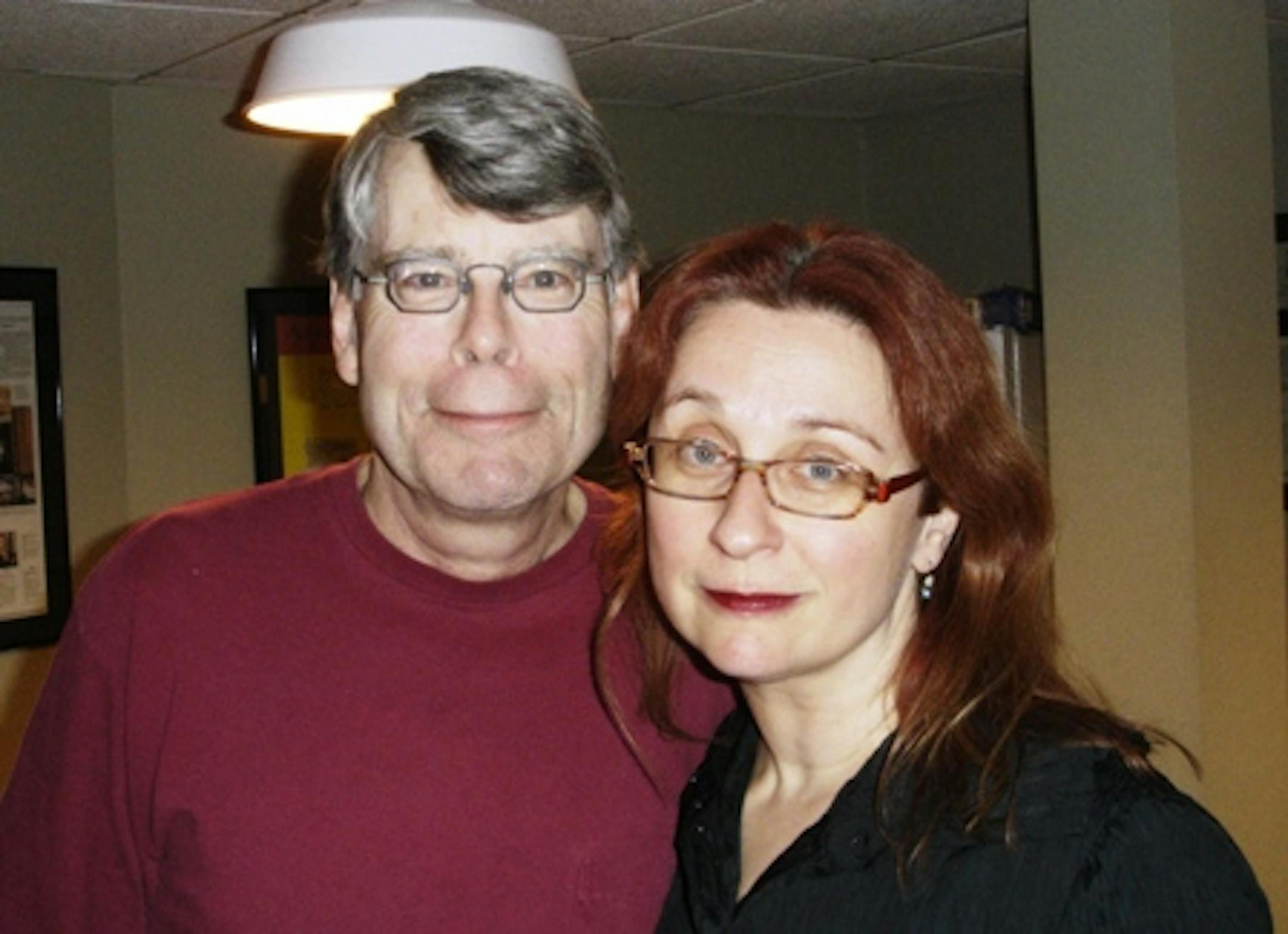 His first novel was "Carrie," which his wife fished out of the trash, and which the publisher Doubleday bought for $2,500 when King was 26. The paperback of that book sold for $400,000.