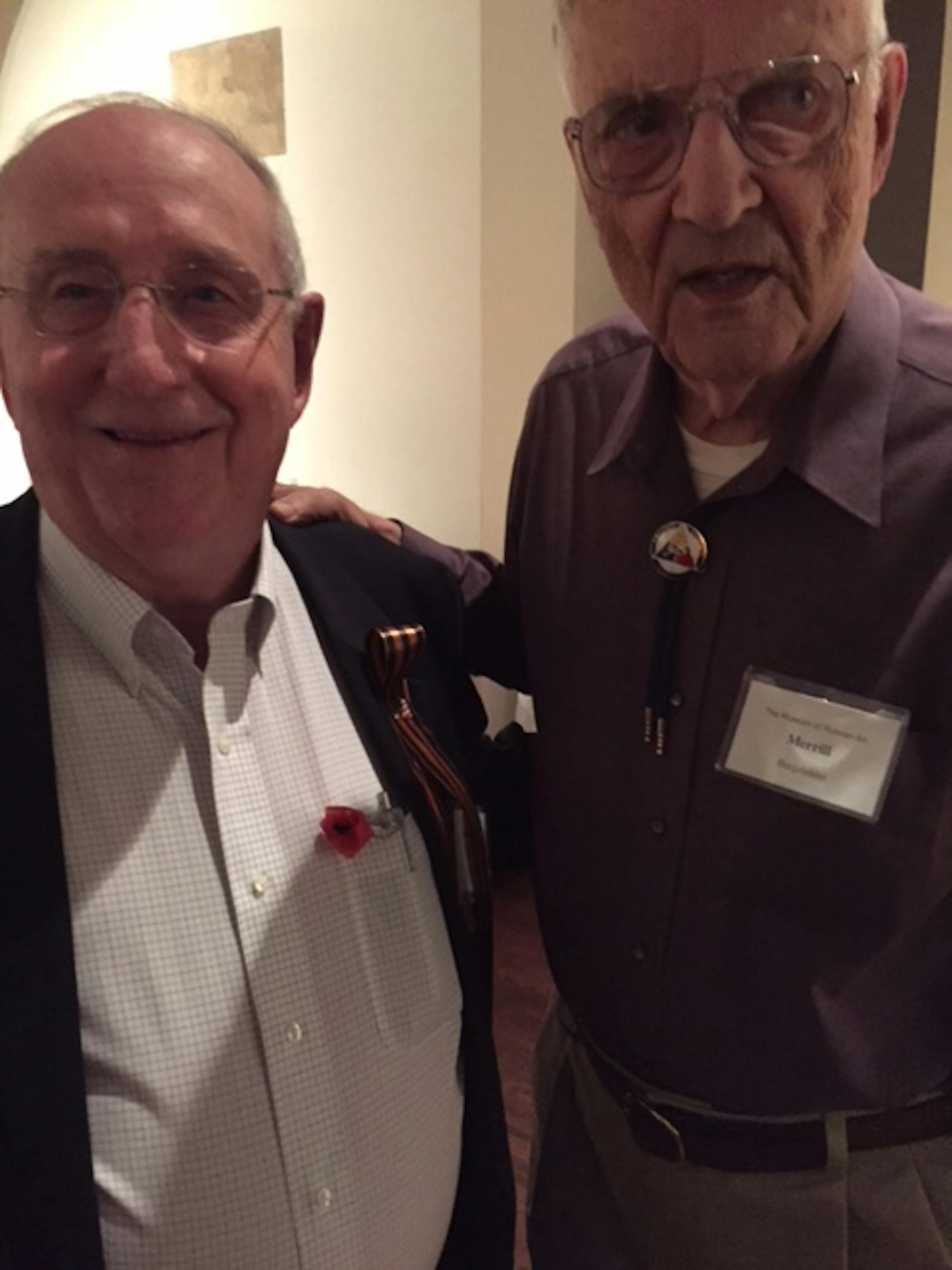 The spirit of Torgau was present for the commemoration at The Museum of Russian Art. Great thanks to Don Patton of the Twin Cites World War II History Roundtable for making sure Minnesota World War II veterans were present at the commemoration. Merrill Burgsthaler was part of the mobile anti-aircraft defense for the Sixth Armored Division and witnessed the carnage of Buchenwald two days after its liberation. Walter Halloran was a combat journalist who photographed the D-Day invasion; the Malmedy Massacre; the capture of the Ludendorff Bridge at Remagen; and the liberation of Dachau.