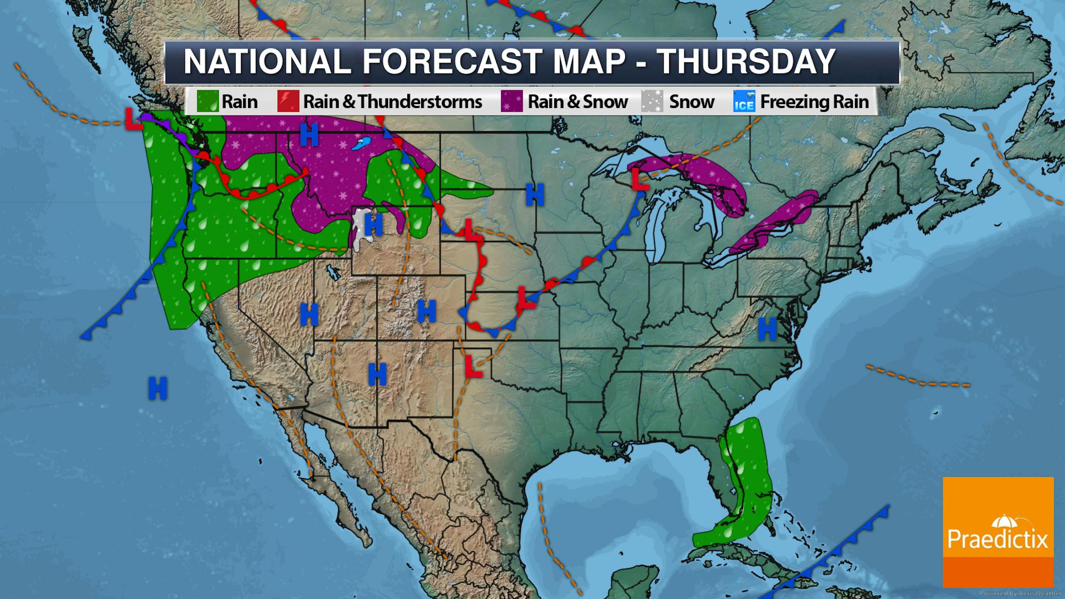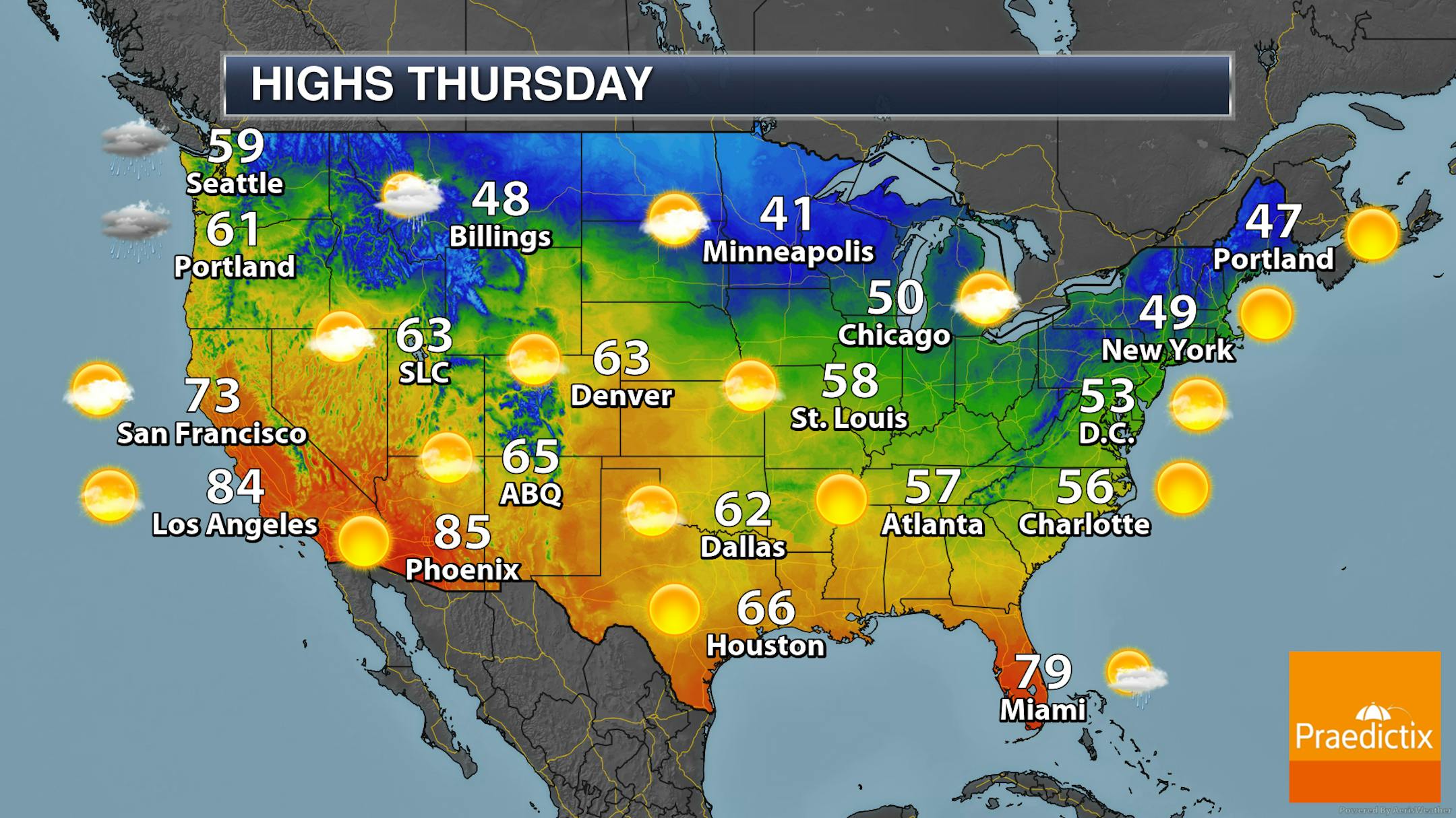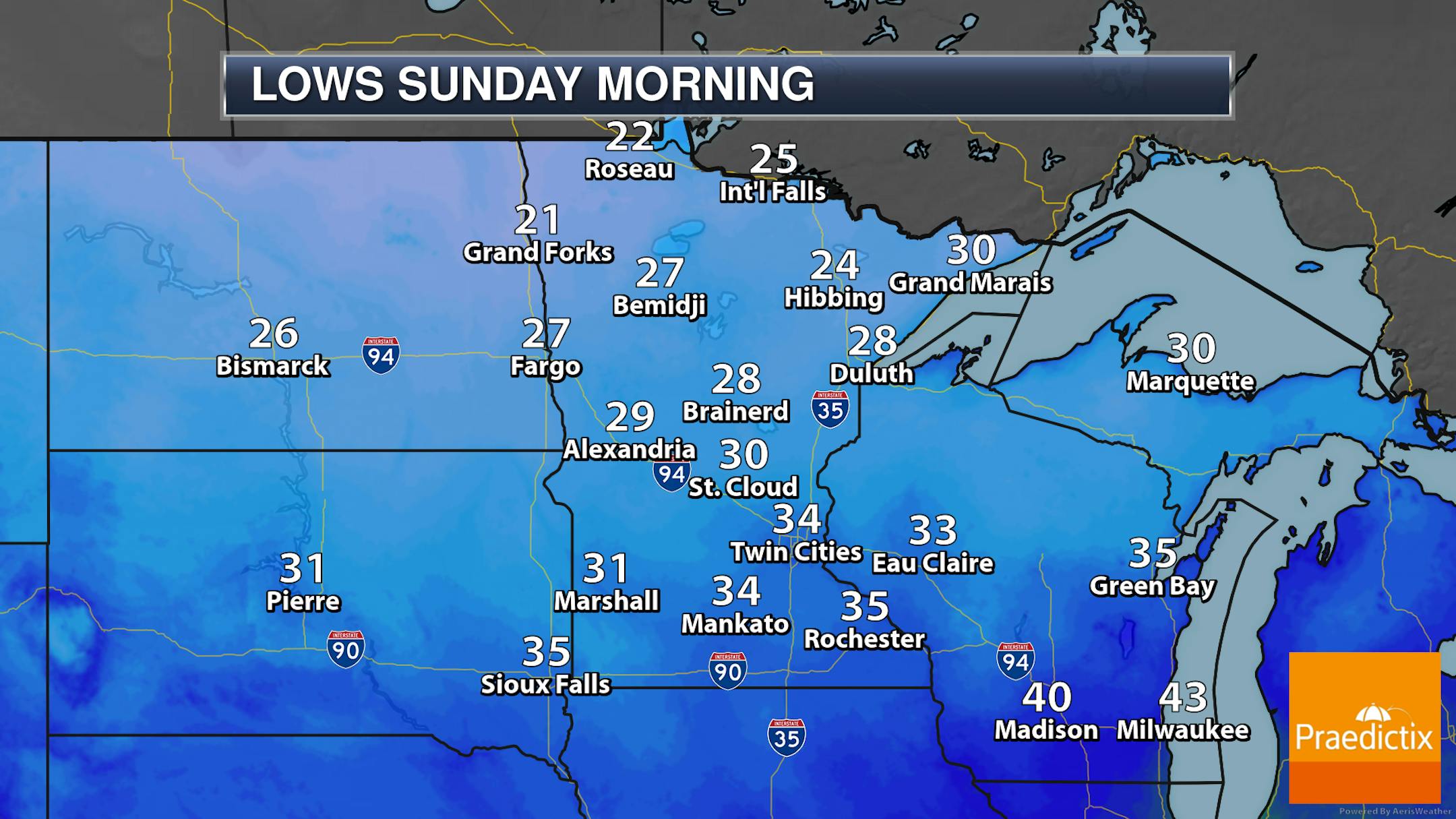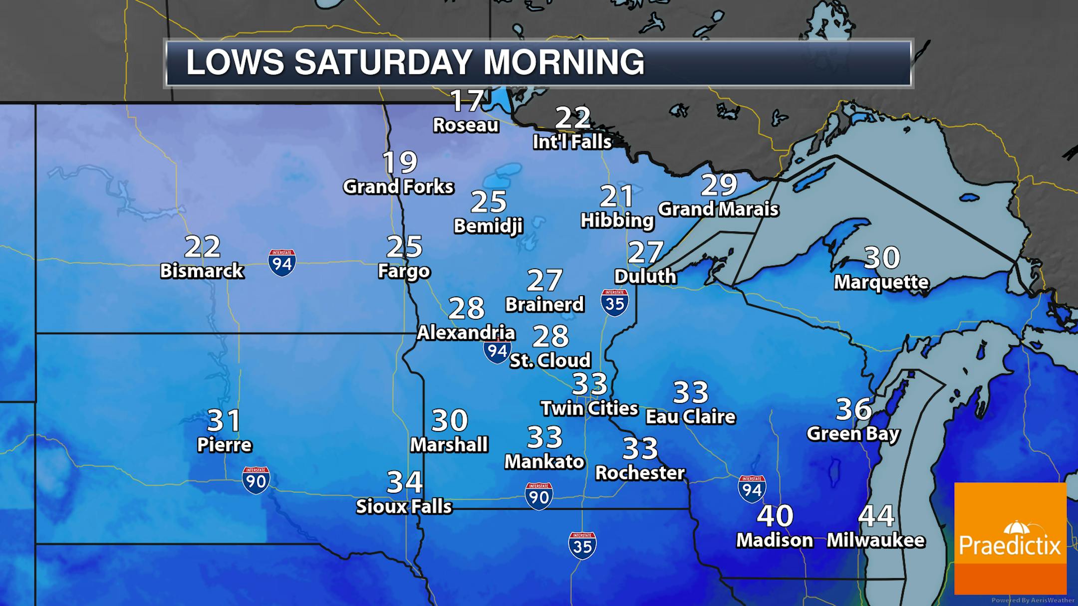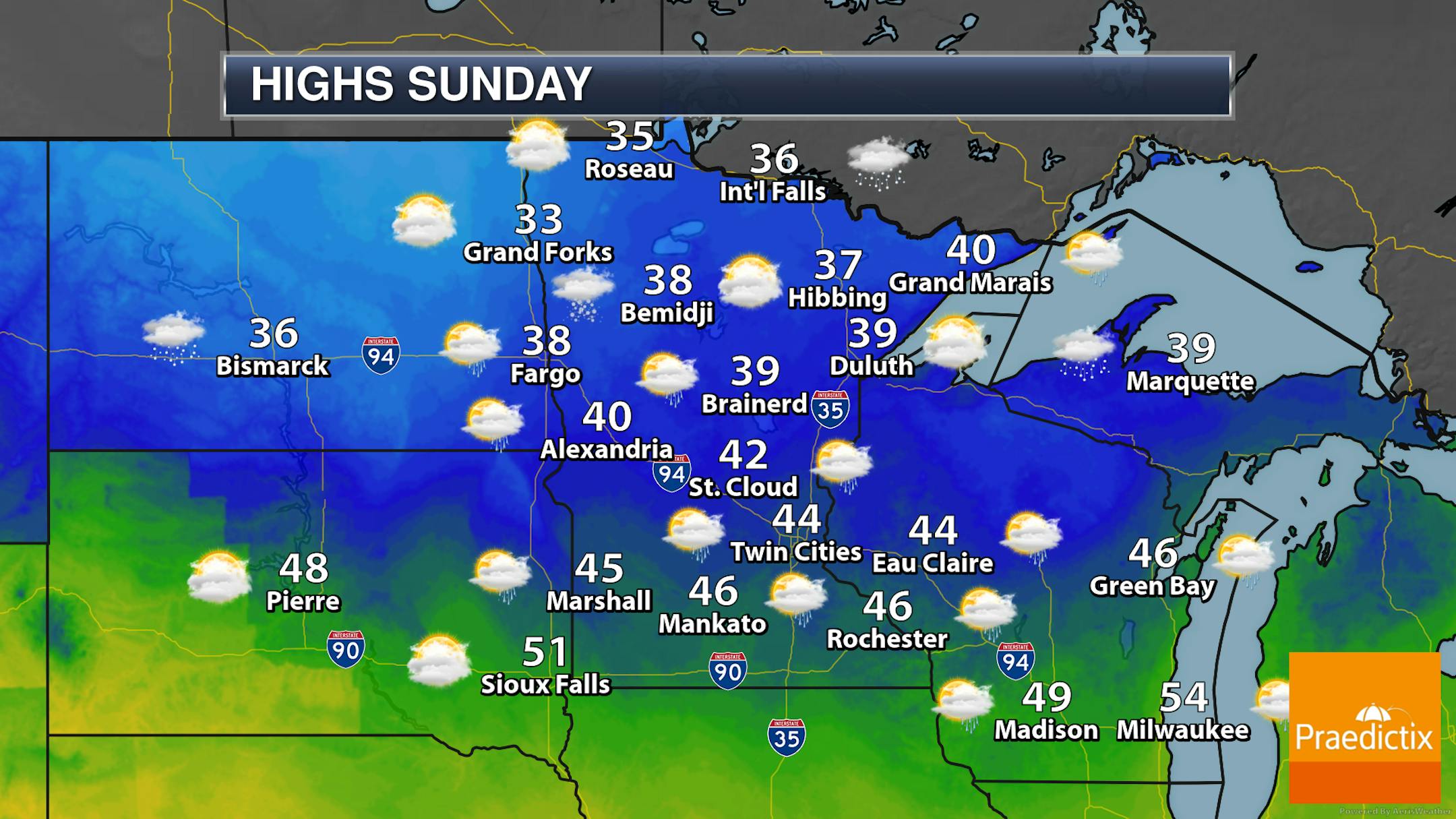 We'll see passing clouds as we head through Thursday in the Twin Cities with lighter winds in place. Morning temperatures start off in the upper 20s with highs topping off in the low 40s.