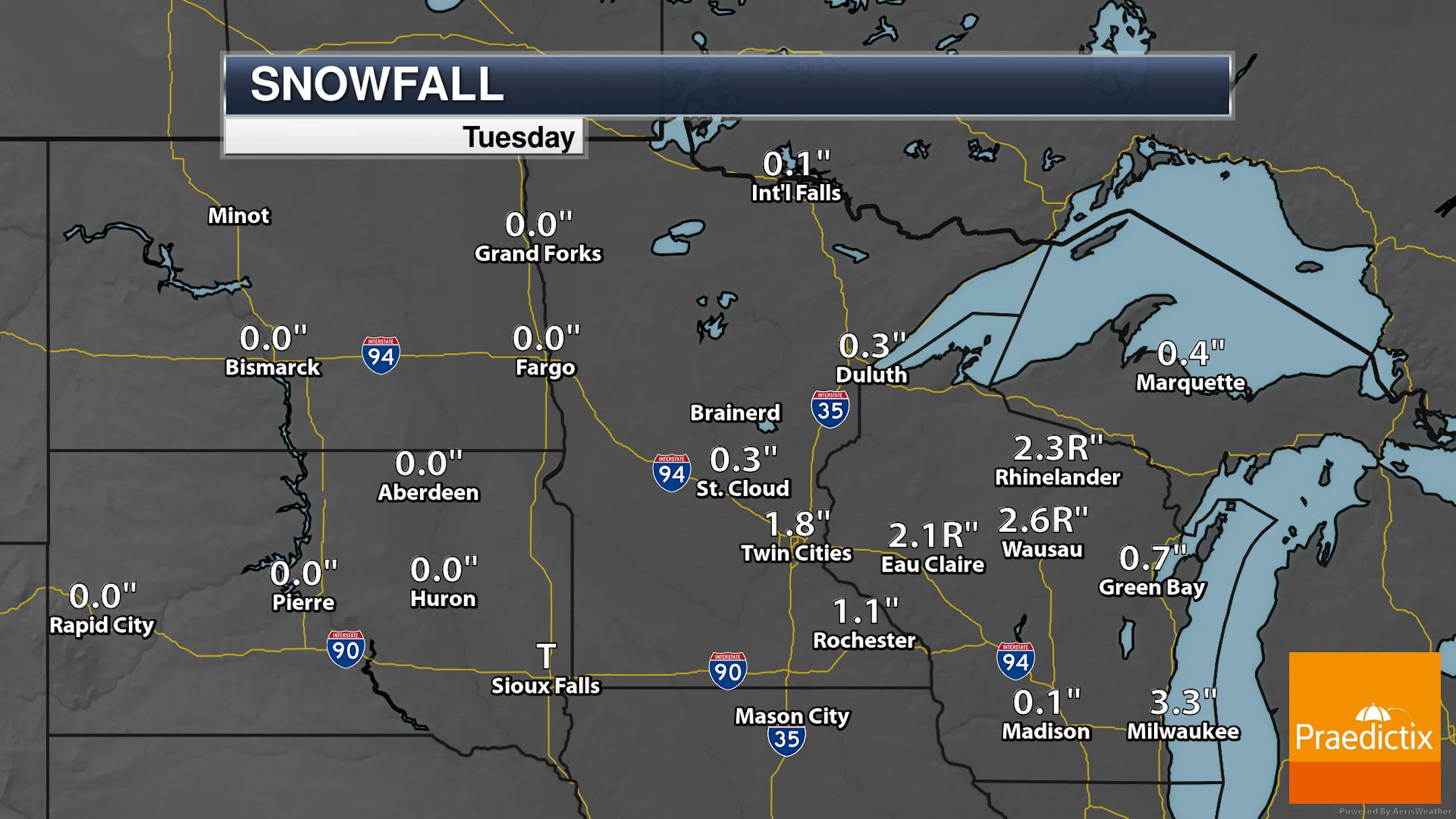 Of the 2.7" that fell over the last two days of the month in the Twin Cities, 1.8" of that fell on Tuesday (Halloween). That makes Halloween 2023 the second snowiest on record - only behind the 8.2" that fell at the start of the famed 1991 Halloween Blizzard.
