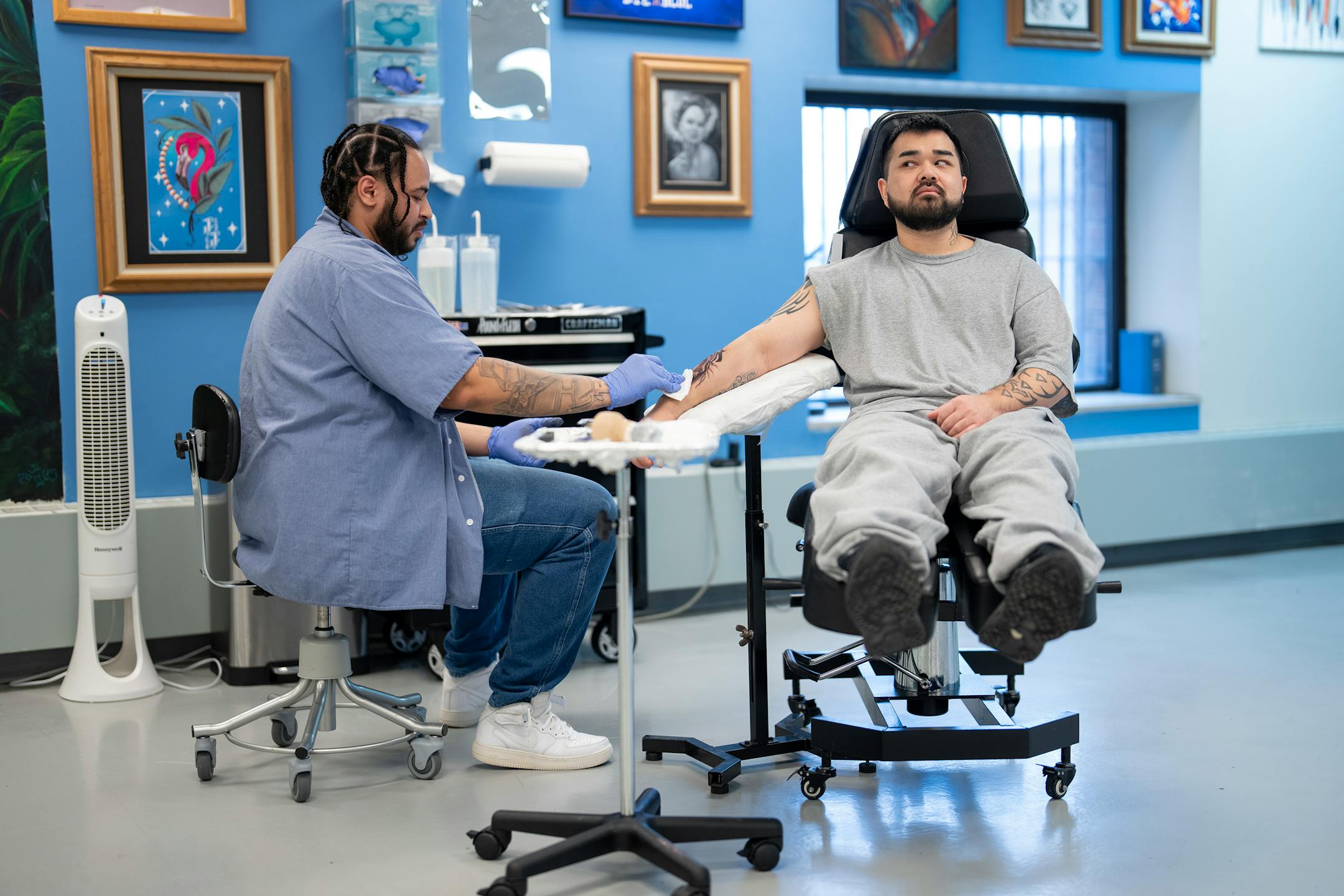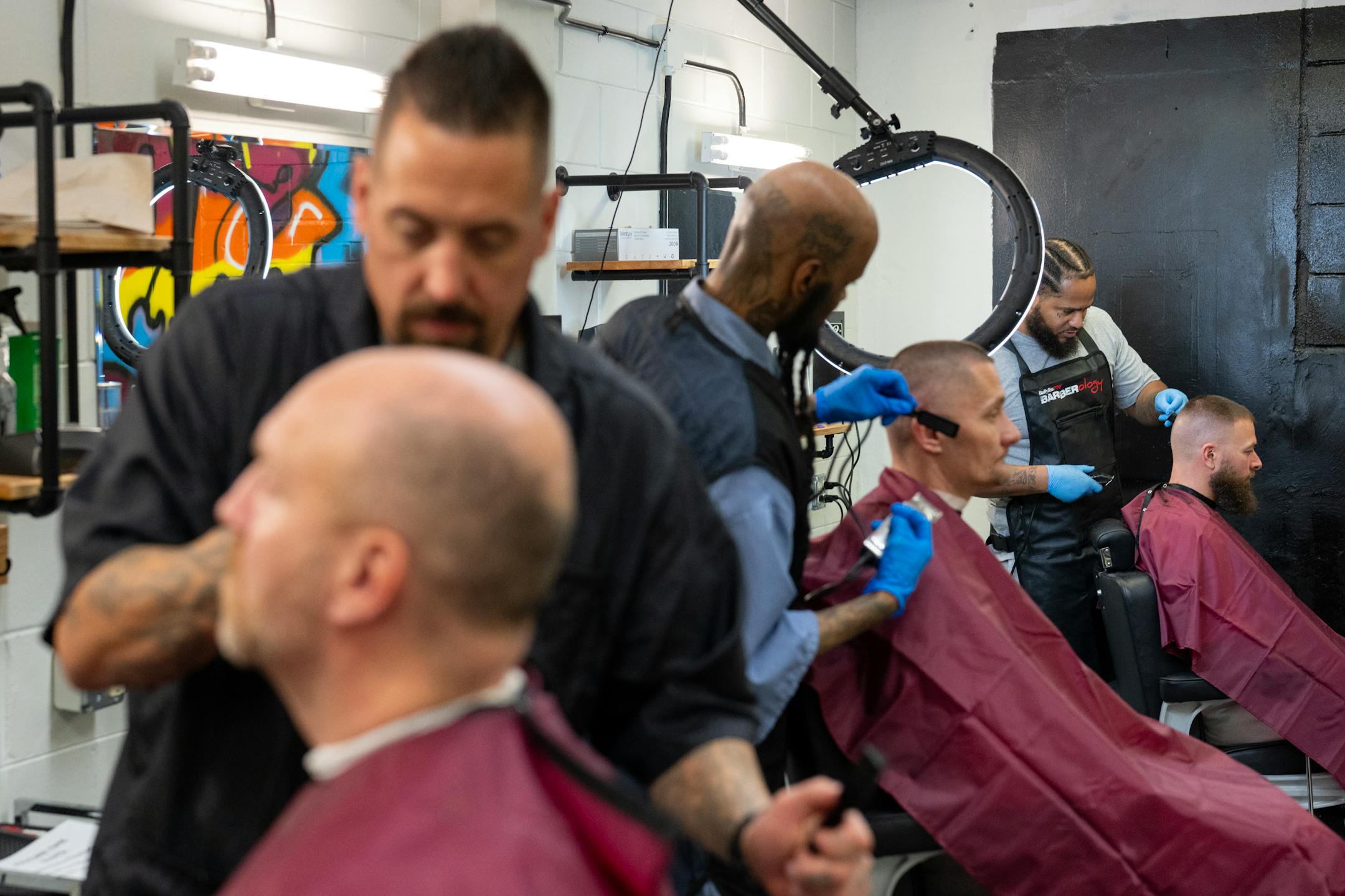 Inside, incarcerated people tend herb gardens, line up for “shape-ups” in a resident-run barbershop, debate books in a discussion group, and help run a prison tattoo shop.
