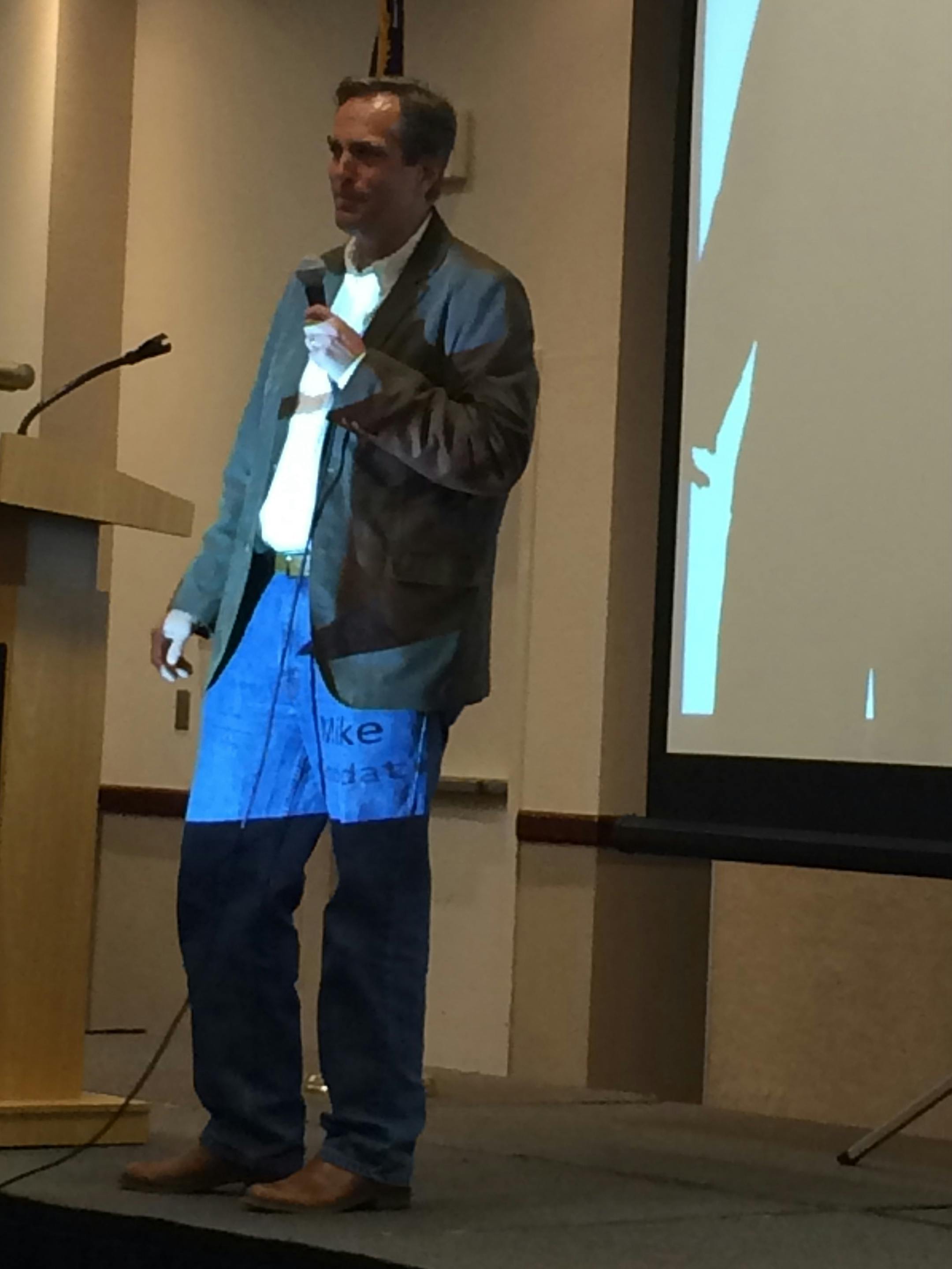 McFadden began his visit by saying that he was in error when he repeatedly said he supported expanding background checks to close the "gun show loophole" early on in his campaign.