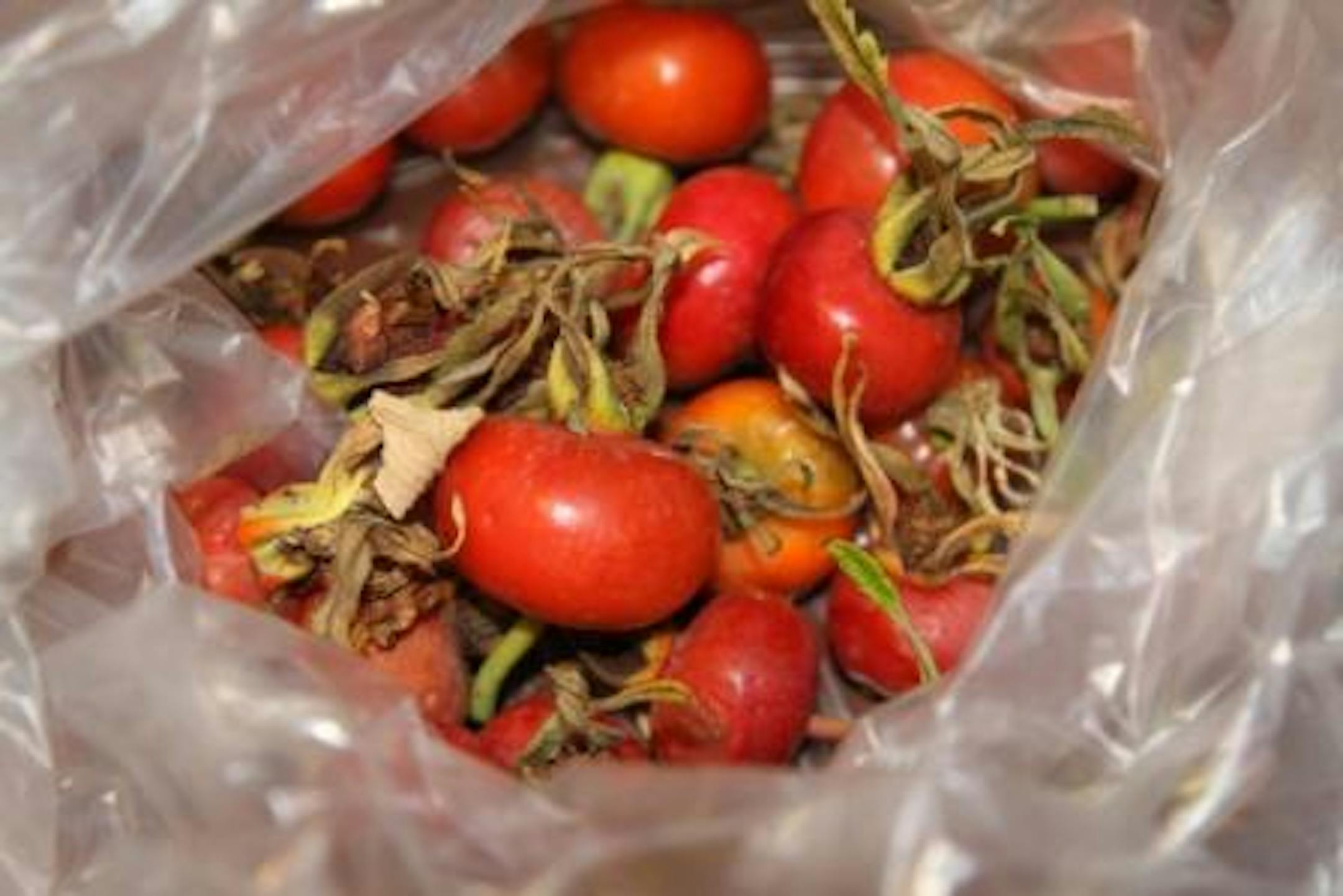 Years later this time I picked in small quantities, just enough for a taste. However my palate is broader now and the round, red rose hips were there for the taking. My husband helped this time reaching through the thorns and disentangling me from the briars within briars of the berries and wild roses that grew along the trail. The foraged fruits will translate into golden-pink cups of tea.