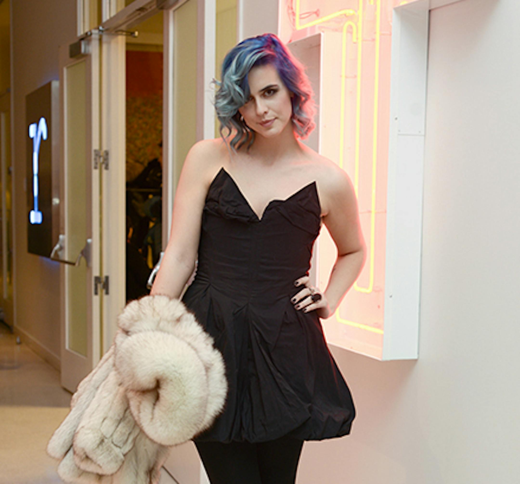 What are you wearing? Hair by Aveda, Vintage silver fox coat, Allsaints dress, Prada heels.