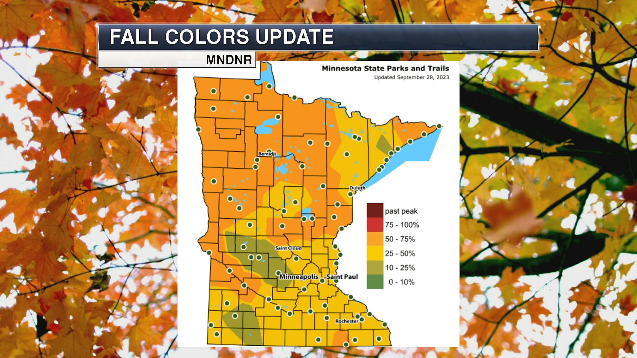 A lot of the state is within the 25-75% color categories according to the latest update from the Minnesota DNR Fall Color Finder. At Zippel Bay State Park (which I have a picture of below taken by me last Friday), they said on Thursday that, "We have a variety of conditions happening in the Lake of the Woods area- and even just in the park! Some areas are past peak, while others are still extremely green. Making this year a tough one to rate!"
