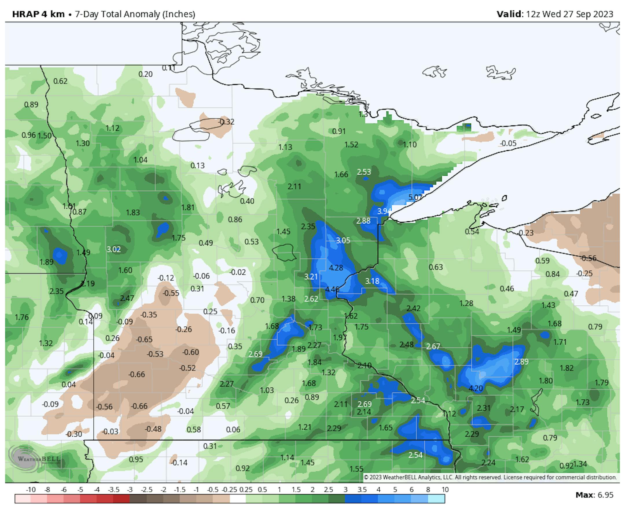 Over the past week, we saw heavy rainfall across portions of eastern Minnesota - with some areas seeing 7-day rain amounts that were up to 5" above average.