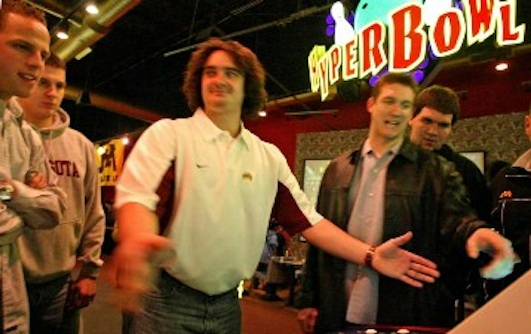 Name: Rhys Lloyd Nickname: Winston Churchill, either for his ability to insult judgmental dowagers or the fact that he was from England. Probably the latter. Claim to Fame, Minnesota: placekicker for both the University of Minnesota and, for a brief time, the Minnesota Vikings. You may recall the British-by-way-of-Apple Valley kicker's rugby-style approach, and Gopher football enthusiasts no doubt remember his game-winners against Wisconsin in 2003 (area crank Jon Marthaler was at that game: "I injured two friends who went to Wisconsin and wore their Badger stuff in the student section that day.") and against Oregon in the Sun Bowl that same year. Was signed by the Vikings as a kickoff specialist in March 2010, but was cut before the season began. Claim to Fame, Everywhere Else: part of a number of NFL mini-camp and training camp rosters (the Vikings, the Ravens twice, the Panthers twice, the Packers, and the Giants), but often let go before the season began. He did stick with Carolina from 2008-2010, leading the league in touchbacks in '08. Where He Is Now: living in Tampa with his wife, former professional golfer Tina Miller Lloyd. As best as my Internet machine can tell, his most recent NFL activity was a workout for the Lions in November of last year. Is He On Twitter: yes! He uses it to taunt former Gopher Ben Utecht and Chelsea FC fans. Has He Been in a Twitter Fight with Patrick Reusse: not yet. Glorious Randomness: Lloyd graduated from Eastview High School in 2001, the same year as Miss Minnesota 2006 Dottie Cannon.