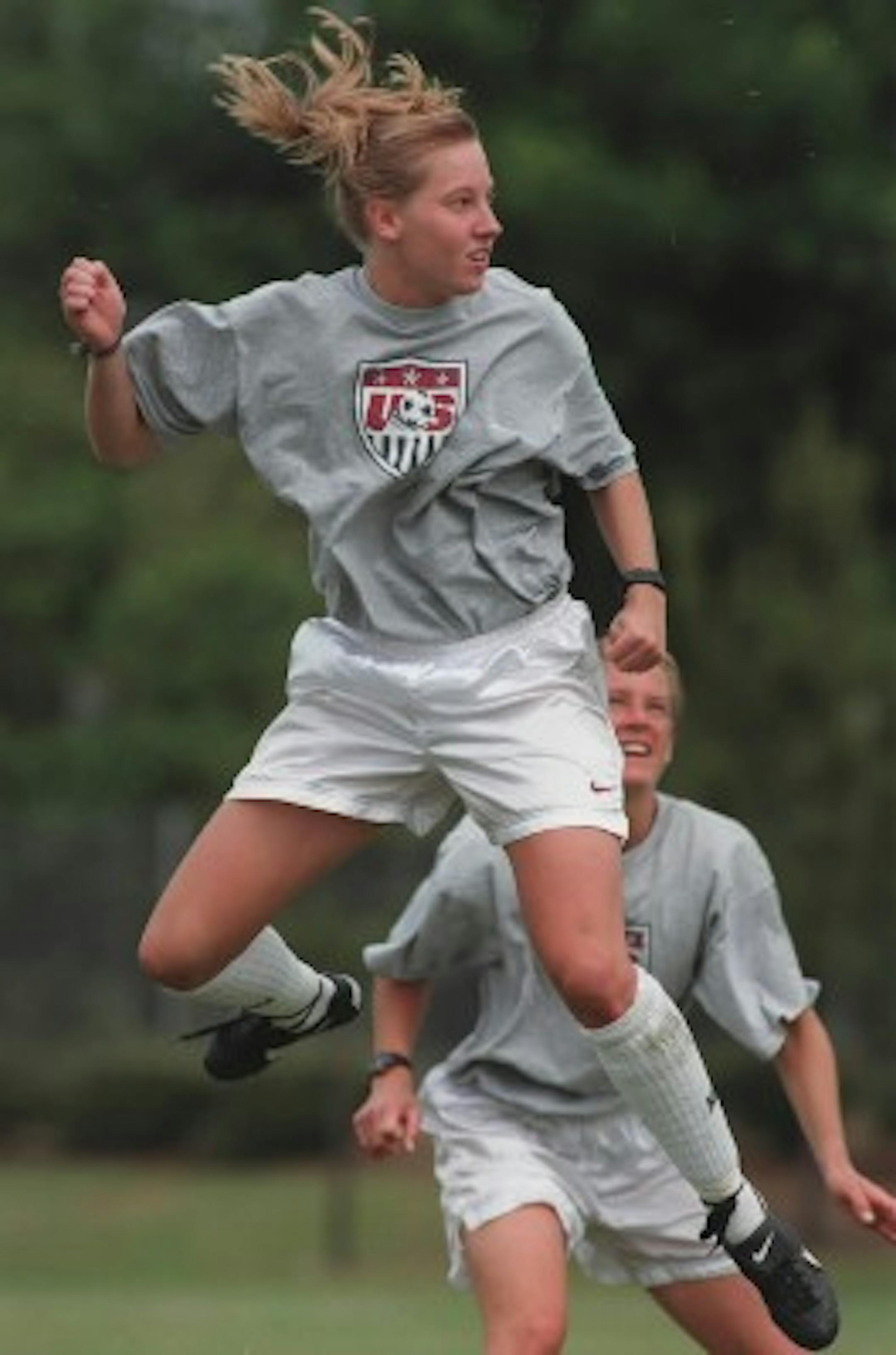 Claim to Fame, Minnesota: an outstanding multi-sport athlete for Burnsville High School in the first part of the 1990s. Was a member of three state champions (soccer and basketball in 1992, soccer again in 1993), won the state 300M hurdle title in 1993, and is a member of the Burnsville High School Hall of Fame, which entitles to her to a voucher for one half-price item in the Burnsville Center food court (Mondays and Wednesdays only; One Potato Two is exempt)*. Claim to Fame, Everywhere Else: was a member of the 1995 US Women's World Cup team, which finished third. She writes about the scrunchie-intensive experience here (mild language warning). Attended Notre Dame on a soccer scholarship, where her bio makes multiple, terrible puns based on her hometown ("a lighting (sic) fast midfielder who will burn her opponents"). We should probably be grateful that she's not from Axmurdertown or Stabdale. Where She Is Now: she is the Digital Marketing Manager for your Minnesota Wild. Do you not want your personal information disclosed by the Saint Paul Arena Company and/or Minnesota Wild? She can help you! Want to know how big the lifts are in Kenny Chesney's boots when he plays the Xcel? Just ask! Is She on Twitter: yes! Follow her @hollymanthei. Do it. Do it now. Glorious Randomness: she is also one of the be-tank-topped models for the Minnesota Timberwolves' Ladies Night Out promotion. *unconfirmed