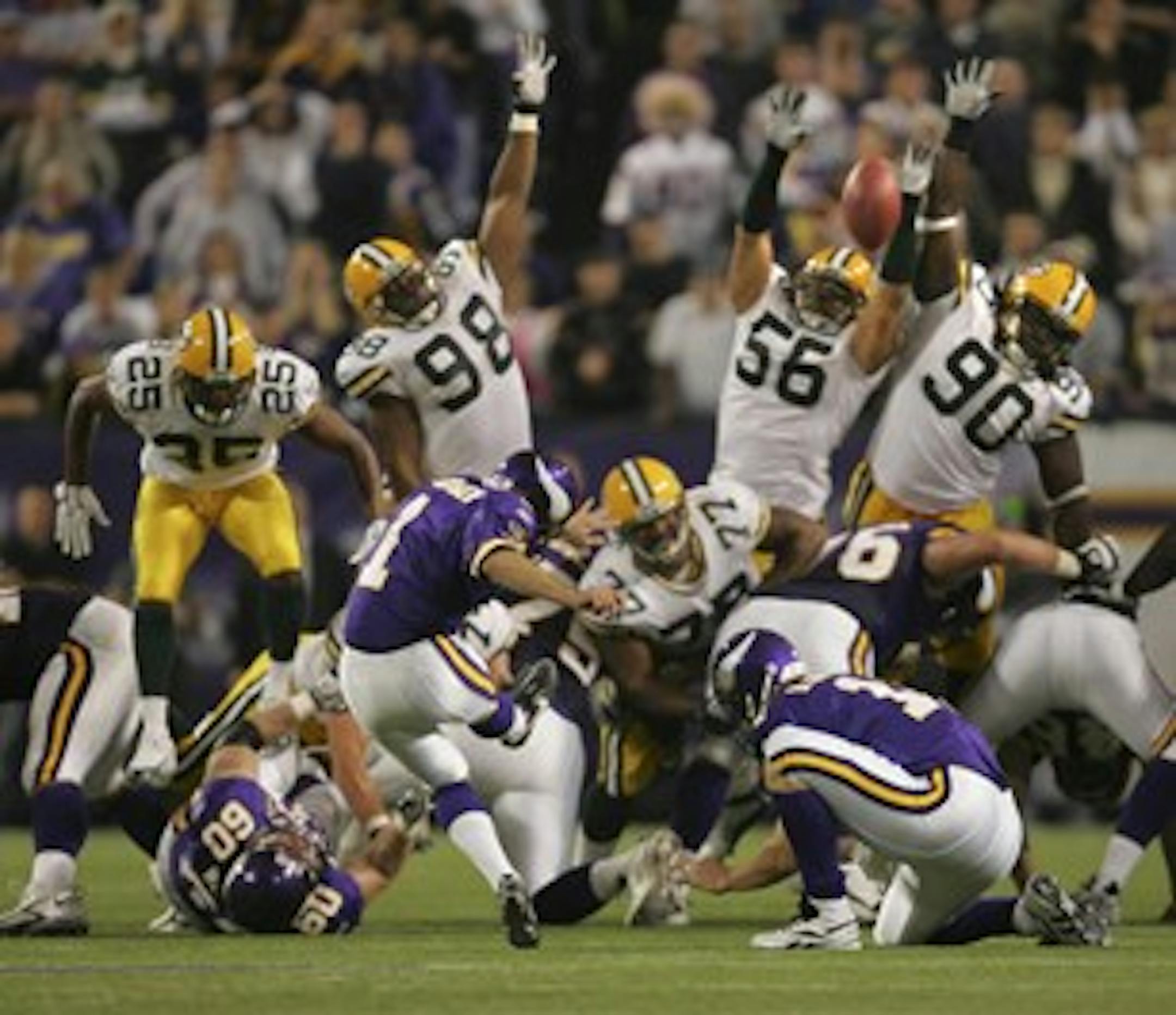 Name: Paul Edinger Claim to Fame, Minnesota: the placekicker for your 2005 Minnesota Vikings. That was long enough for him to kick the longest field goal in the Purple's history, a 56-yard game-winner against the Green Bay Packers, who are currently in last place in the NFC North and desperately searching for answers in an increasingly lost season. Claim to Fame, Everywhere Else: spent the balance of his NFL career with the Chicago Bears, who used a 6th-round pick on the Michigan State product in 2000. Had the unique kicking stance where he would face away from the line of scrimmage and snap himself around to kick the ball, which was never not goofy-looking. Also ran a Costa Rican kicking camp that Deadspin thoroughly mocked and ridiculed. Speaking of ridicule, his Wikipedia page contains the almost definitely false claim that he "was considered for the role of Steve Stifler in the American Pie movies." Where He Is Now: as of 2010, Edinger was living in St. Augustine, Florida with his wife (here are pictures from their wedding) and daughter and kicking for the Jacksonville Sharks of the Arena Football League. He and his wife are listed as the North Florida "street squad product reps" for Innovative Health Solutions, which appears to be a health-drink concern. Is He on Twitter: apparently. The @kickinitinCosta account has only Tweeted once, in 2009, to promote his aforementioned Costa Rican kicking camp. He follows Jim Haslett, for what it's worth. Has He Been in a Twitter Fight with Patrick Reusse: no. Glorious Randomness: one week after Edinger's record-setting field goal, Daunte Culpepper's knee blew up and Steve Smith rowed an imaginary boat.