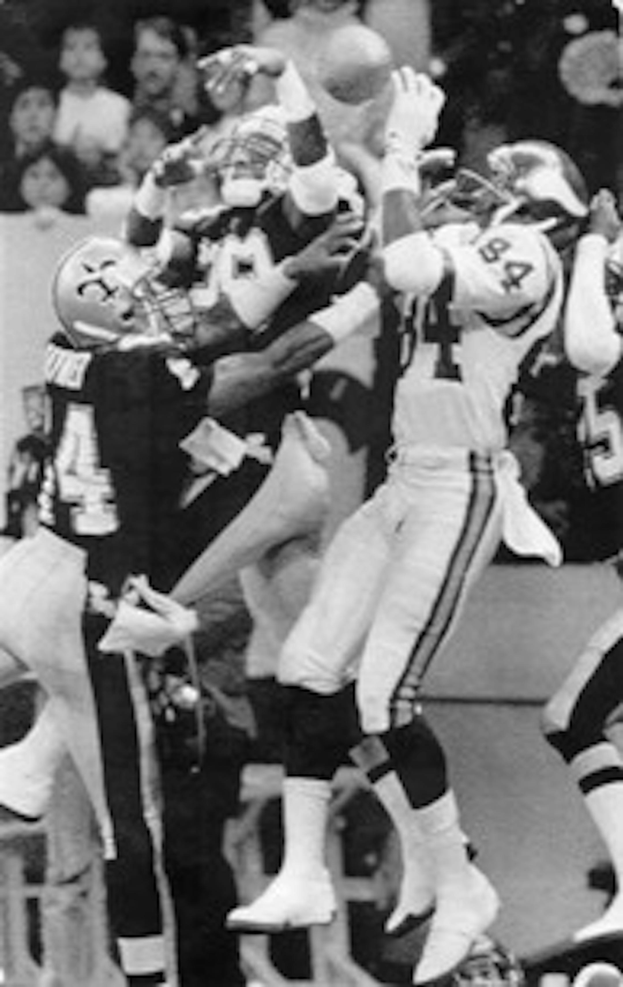 Name: Hassan Jones Claim to Fame, Minnesota: the Vikings' fifth-round draft pick in 1986, Jones played wide receiver for the Purple from 1986-1992. Had his best season in 1990 with career highs in receptions, yardage and touchdowns. Brought up today solely because of his catch of a Wade Wilson Hail Mary as the first half of the 1987 Saints/Vikings playoff game in the Superdome ended. Claim to Fame, Everywhere Else: the Florida native went to high school in Clearwater and college at Florida State. He finished his NFL career with the Kansas City Chiefs. Where He Is Now: on probation and in counseling after pleading no contest to a domestic issue in 2009. This was reportedly not Jones' first run-in with the law. Let's talk about something else. Is He on Twitter: No. Glorious Randomness: Clearwater, Fla. is home to Hulk Hogan, Lisa Marie Presley and the Church of Scientology world headquarters. Also, Jones had a teammate on the 1983 Florida State team named Weegie Thompson, which is a better name than yours.