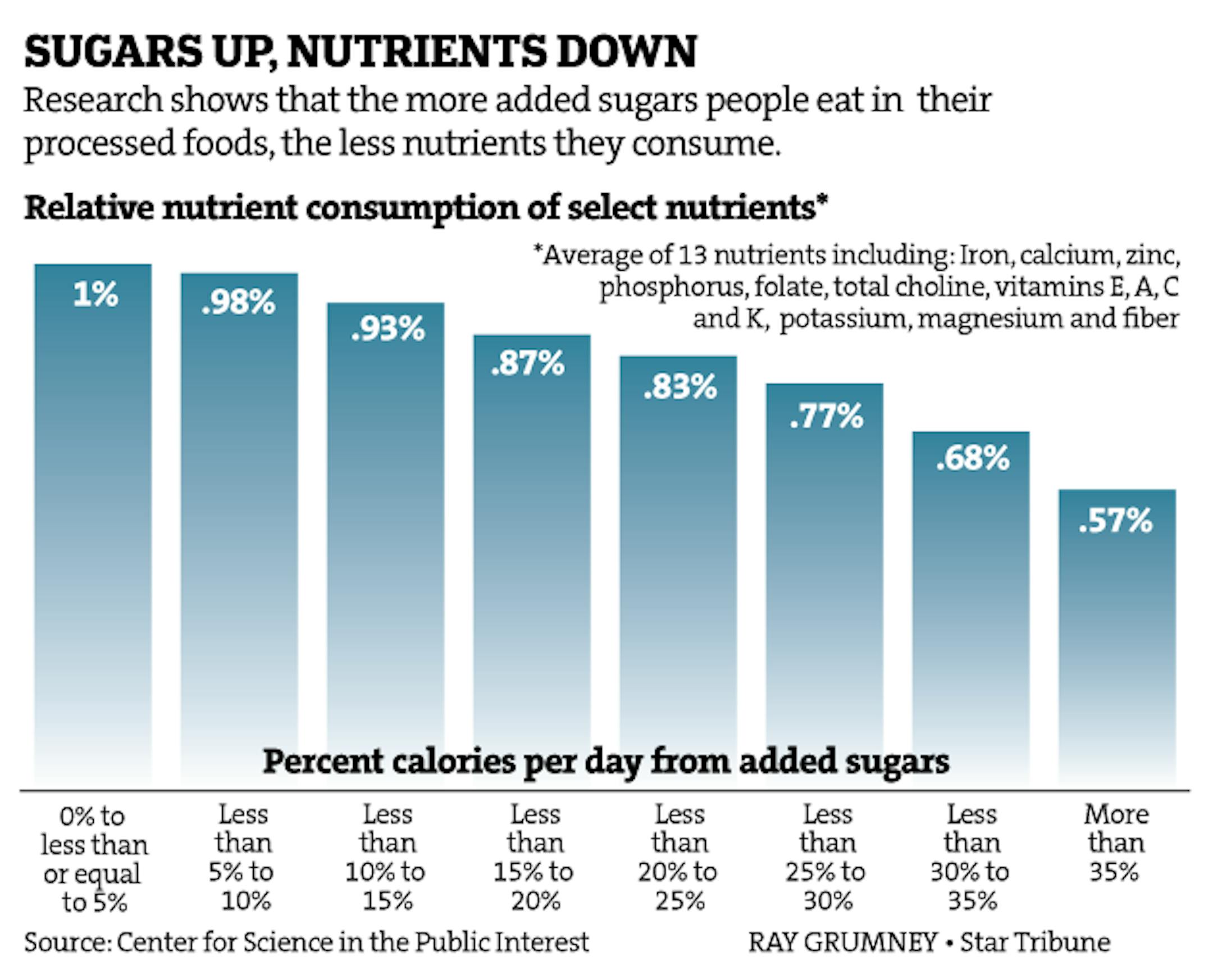 Research shows that the more added sugars people eat in their processed foods, the less nutrients they consume.