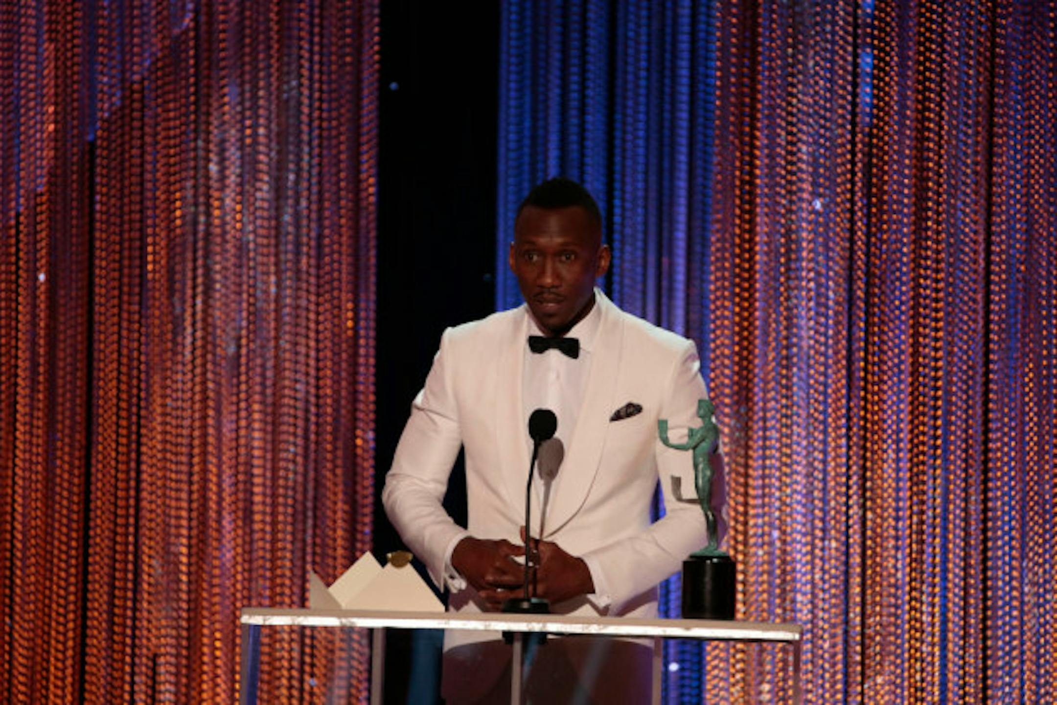 Mahershala Ali picking up SAG Award for "Moonlight"/ photo courtesy of LA Times