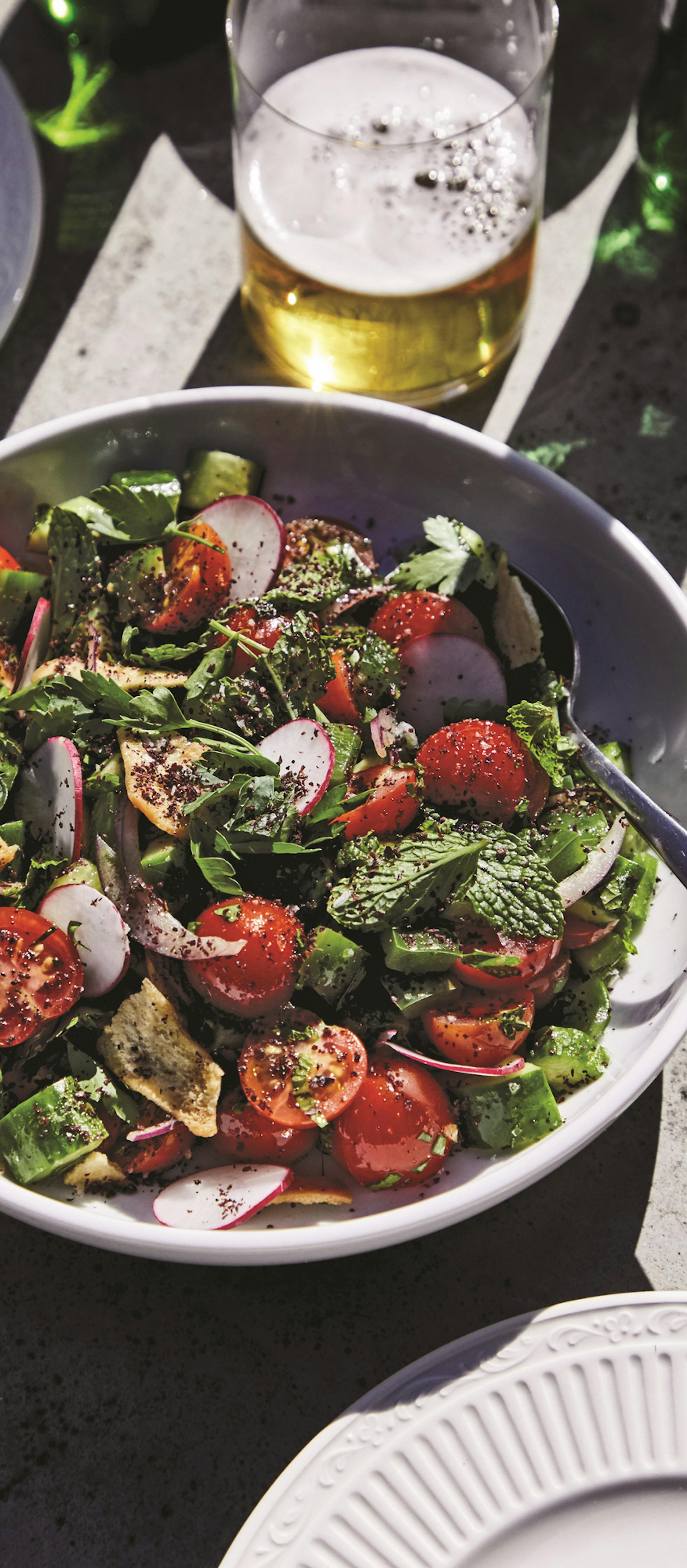 Note: In Lebanon and elsewhere in the Middle East, there is a whole class of dishes dedicated to using up old flatbread, called fattat. Sumac is a spice available at Penzeys and Middle Eastern markets, as well as by order from Walmart or online. A good substitute for this very tart spice is lemon zest. From "Vegetables Unleashed, A Cookbook," by José Andres and Matt Goulding.