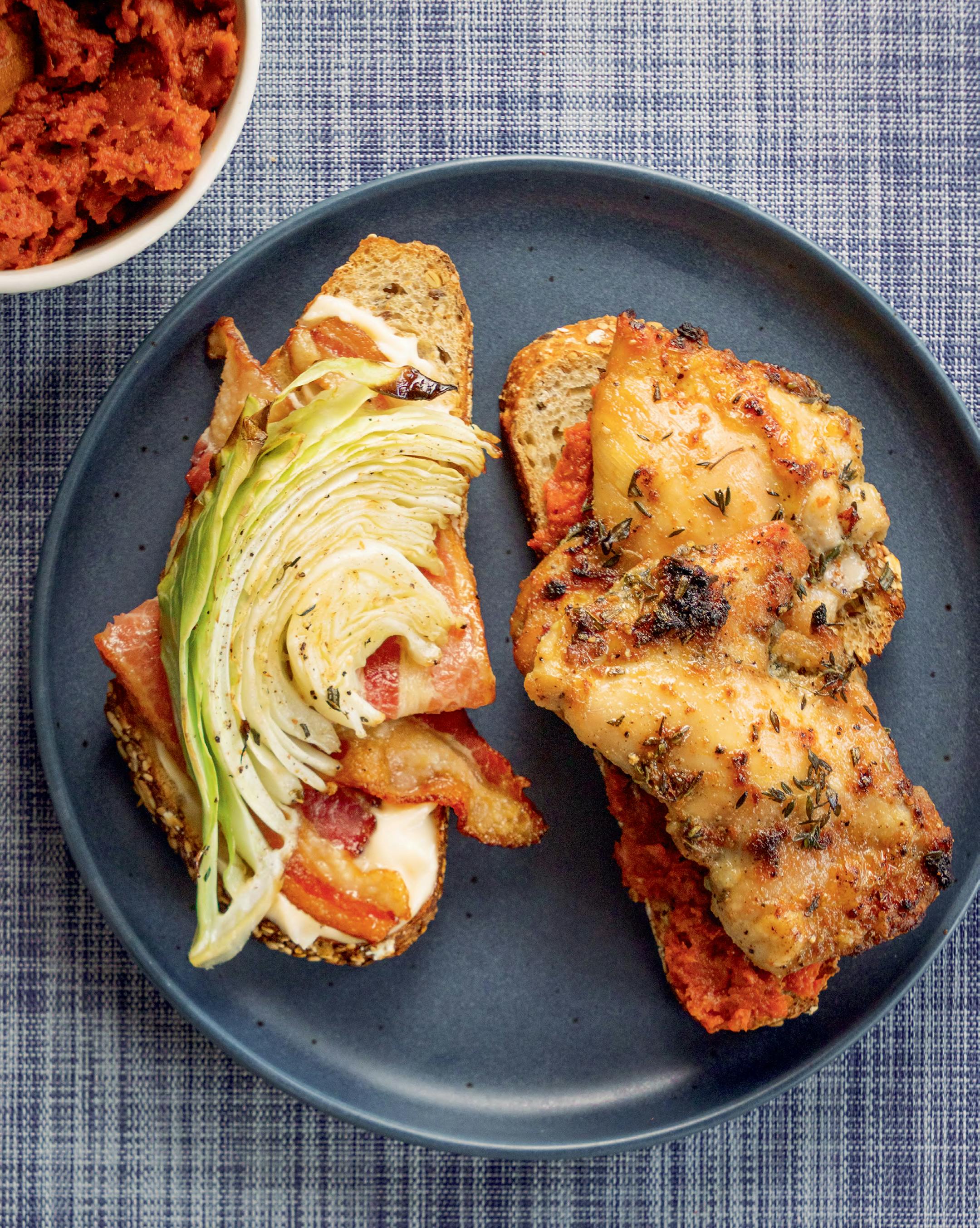 From “Warm Your Bones: Cozy Recipes for Chilly Days and Winter Nights” by Vanessa Seder, who writes: “This crispy, juicy, flavorful, hot, protein-filled sandwich is my winter-friendly riff on a BLT. The secret lies in roasting the cabbage in the fat from the bacon and the chicken thighs, ensuring that all the flavors intermingle and get to know one another. Why chicken thighs? I find that they’re not only richer than white meat but more forgiving. If you accidentally overcook them, they won’t dry out the way chicken breasts do. Finally, the sun-dried tomato spread adds a tangy sweetness that both cuts through and complements the richness of the chicken and bacon, resulting in a harmonious whole that will leave you ready for winter hiking, dogsledding, or heading to Grandmother’s house on a one-horse open sleigh.” (Union Square & Co., 2024)