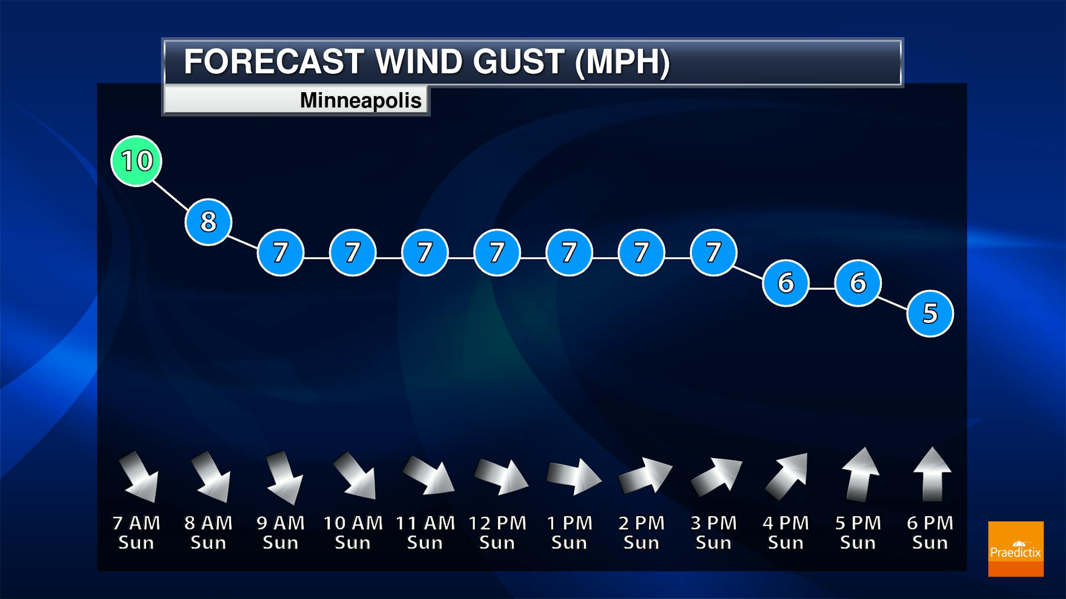 Feels like temps for Minneapolis on Sunday won't be as cold as it has been as of late. Feels like temps will be in the single digits with feels like temps in the teens through the afternoon.
