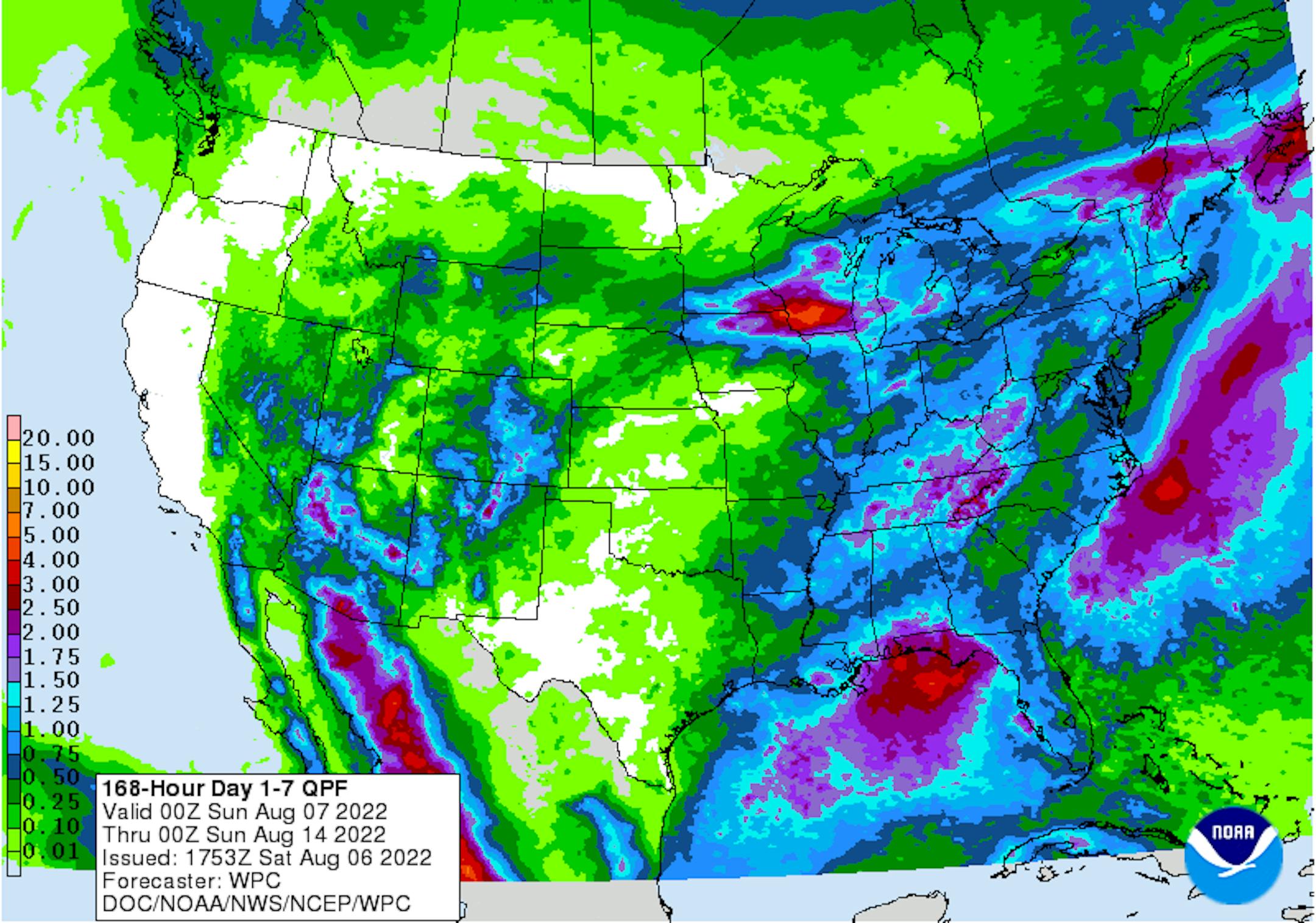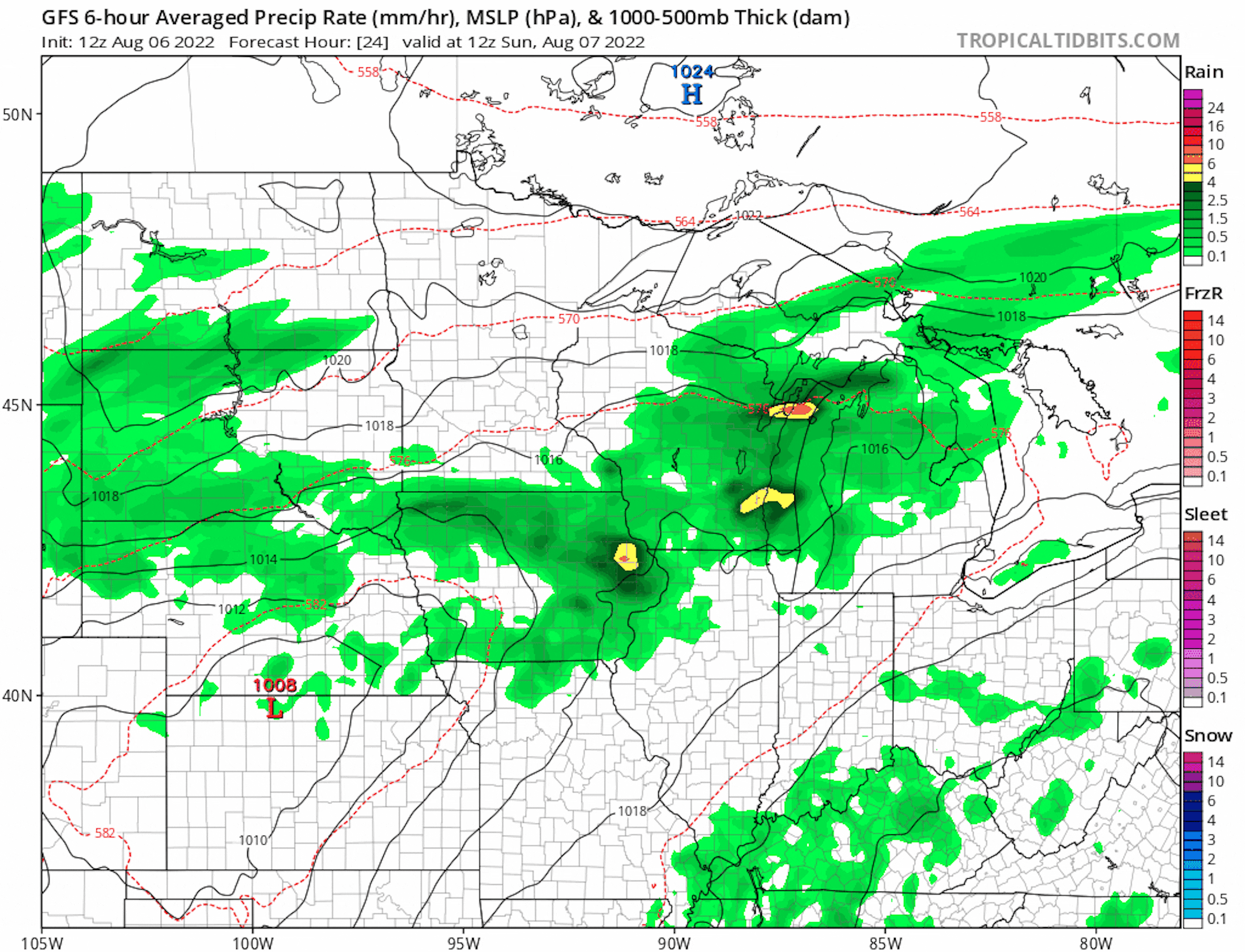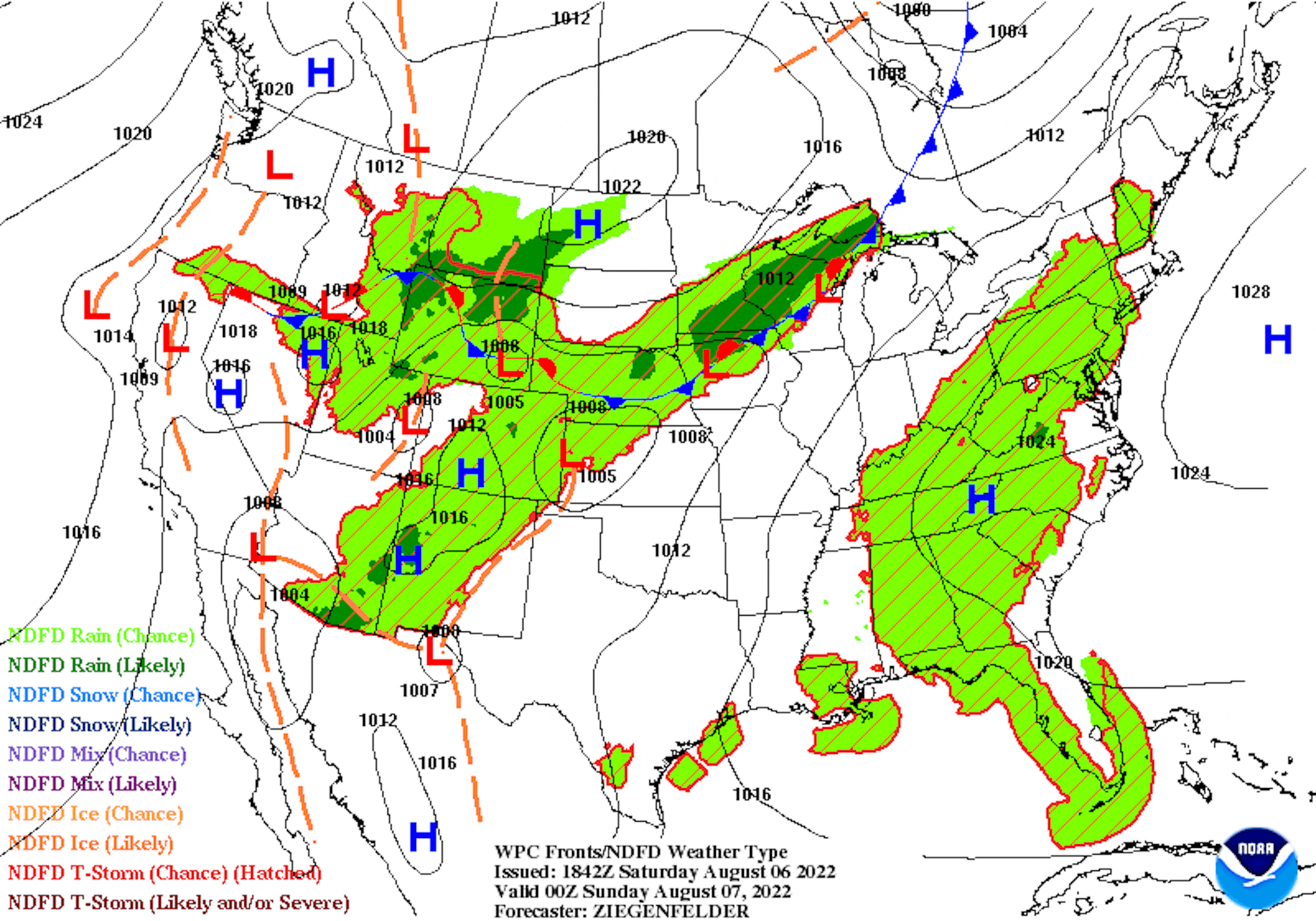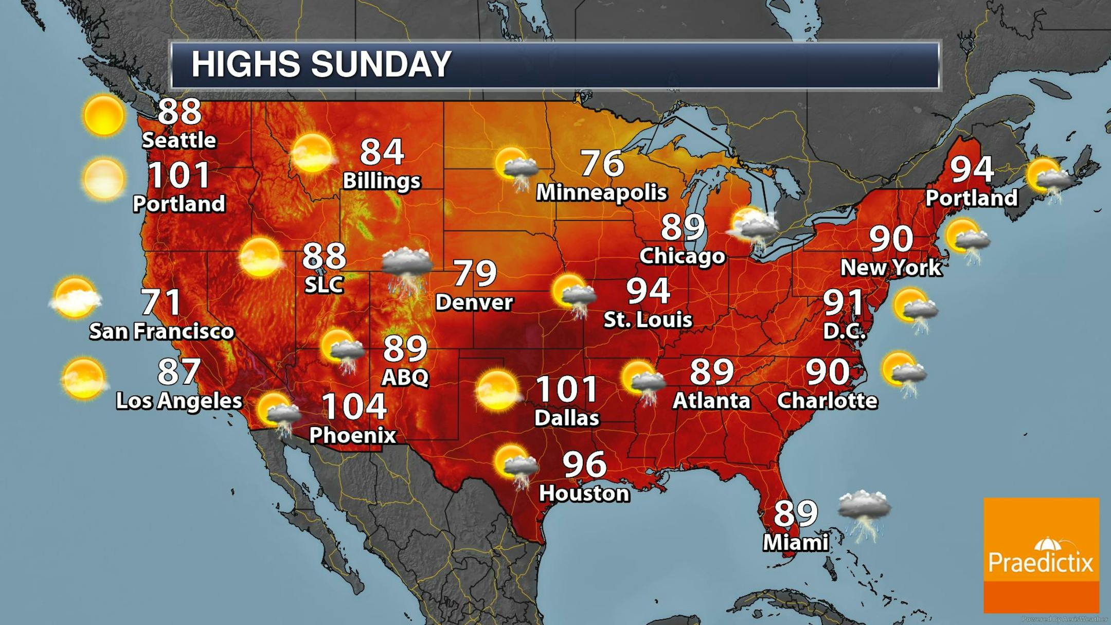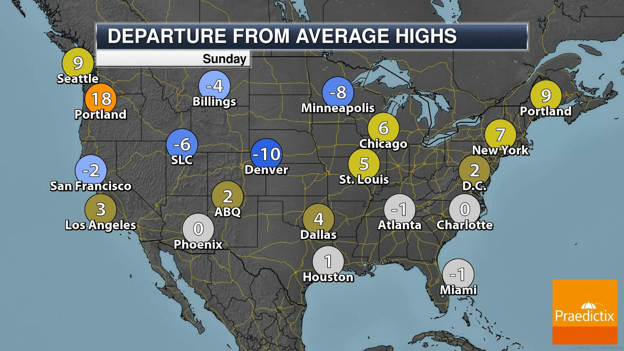 The weather outlook for Sunday shows lingering showers and storms across the southern half of the with highs only warming into the 60s and 70s, which will be nearly -5F to -10F below average for early August.