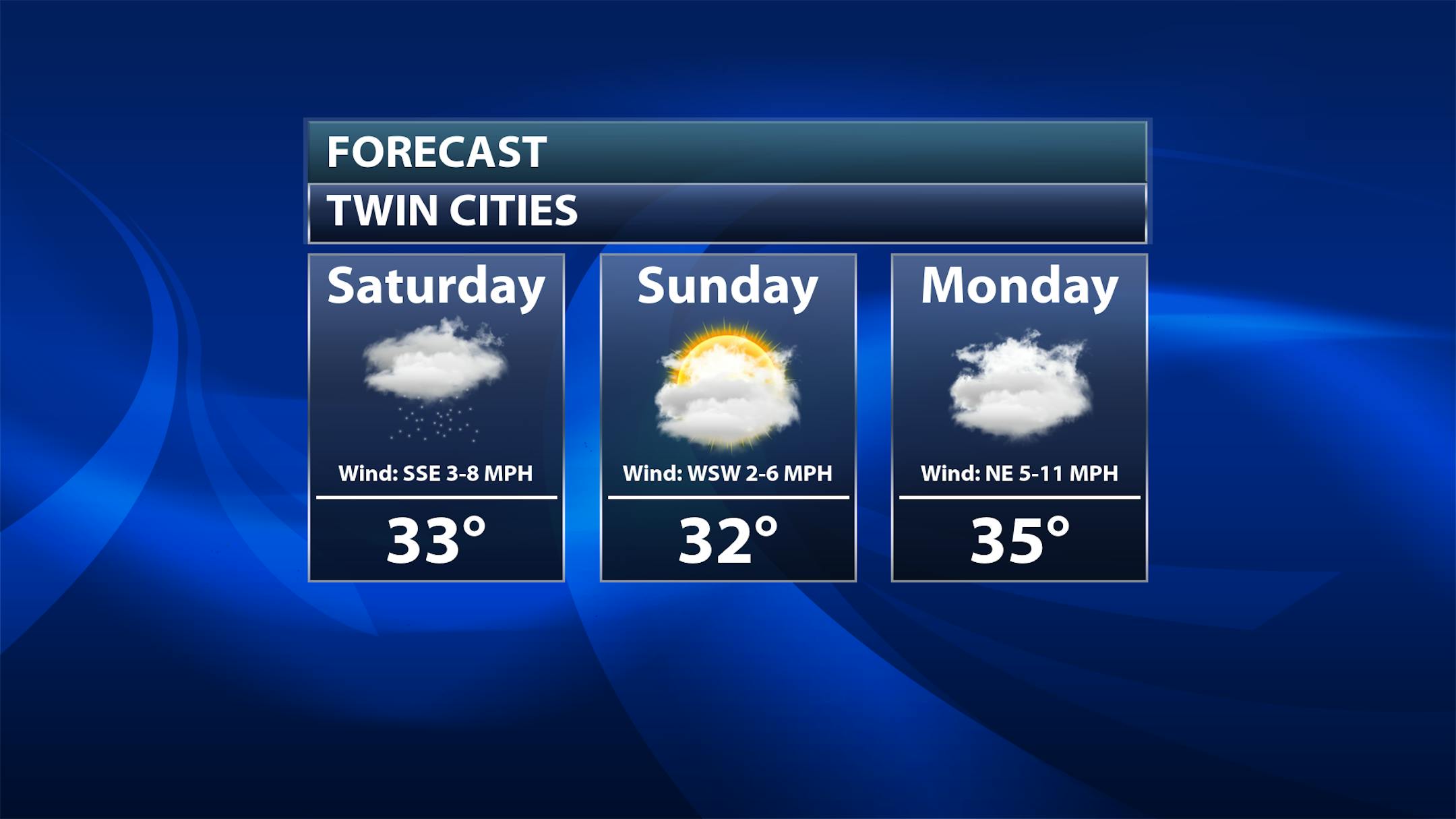 Saturday marks the last day of 2022 - and we will watch the potential for some light snow across portions of the state, including the metro. Any accumulation should be light as highs climb into the low 30s. We'll also be in the low 30s for highs on Sunday - the first day of 2023 - with mainly cloudy skies.