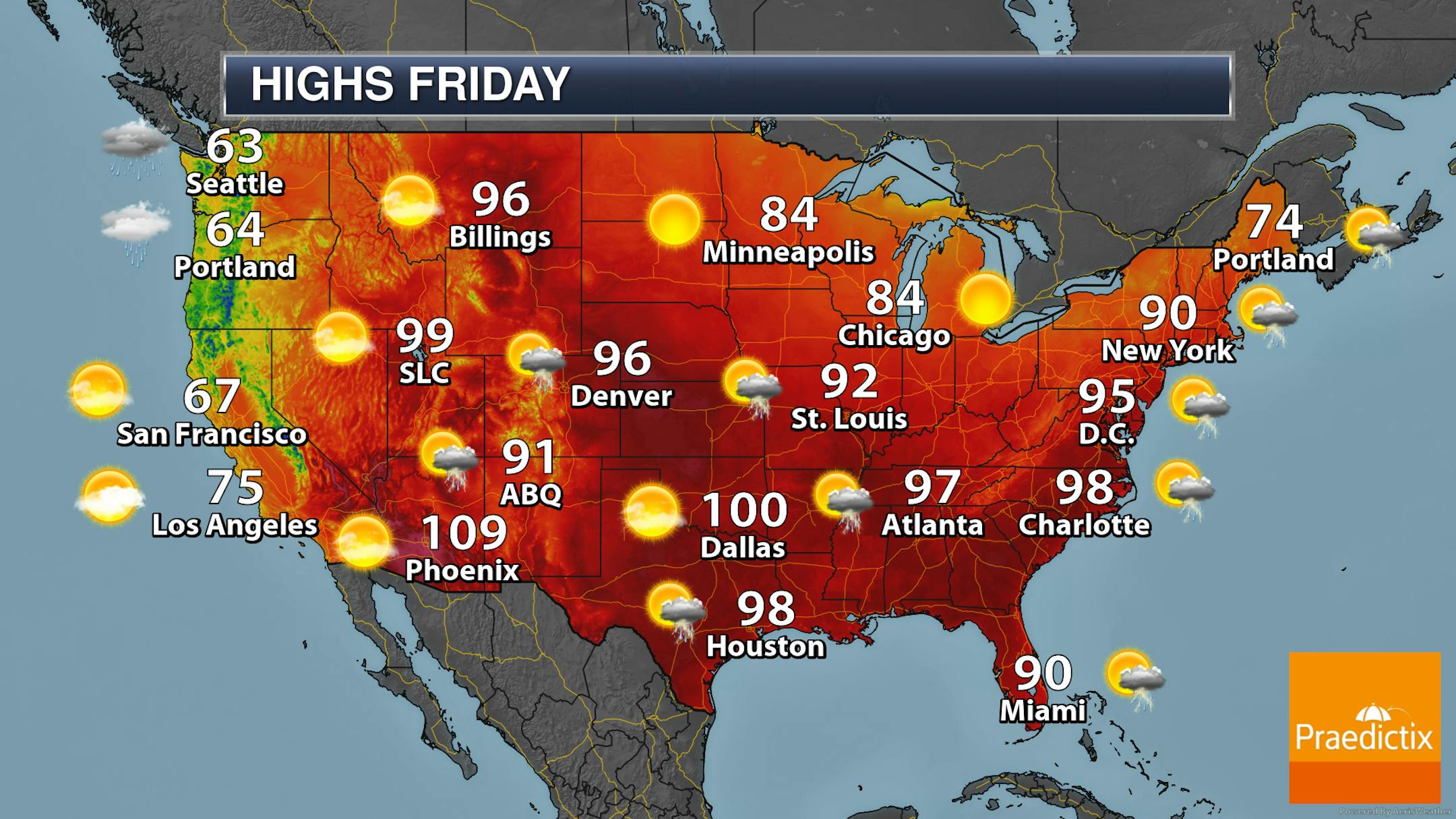Highs will be a few degrees above average as we head through the last day of the work week - mainly in the 70s and 80s across the state - under mainly sunny skies.
