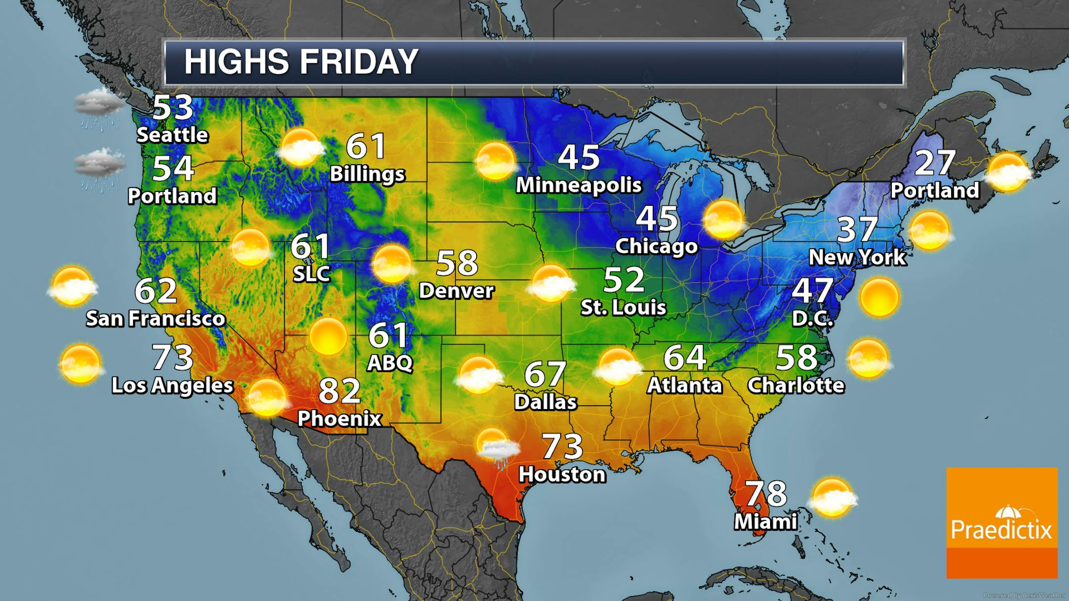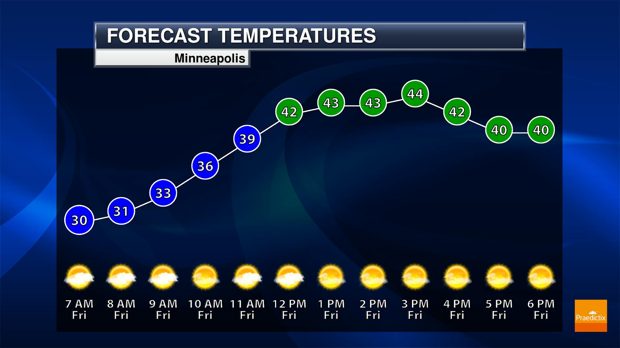 Still nothing to complain about as we end the work week in the Twin Cities, as another fairly sunny and warm day is expected Friday. Morning temperatures will start off in the mid to upper 20s, climbing into the mid-40s for highs.
