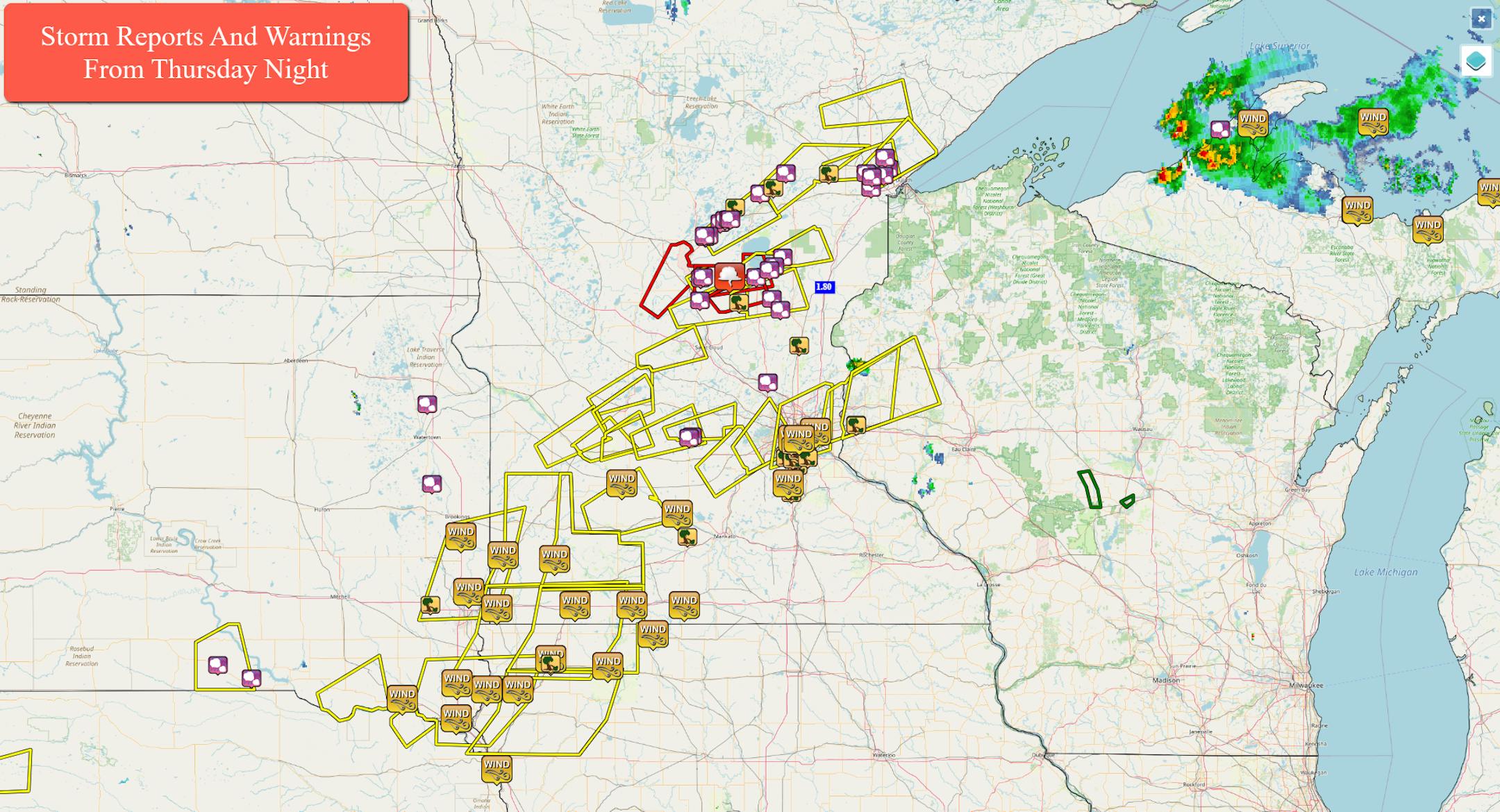 A couple rounds of strong storms moved across the state Thursday evening into Friday morning, with reports of funnel clouds up north and wind damage in the south metro. Shortly after 3 AM Friday morning, MSP Airport had a wind gust of 64 mph.