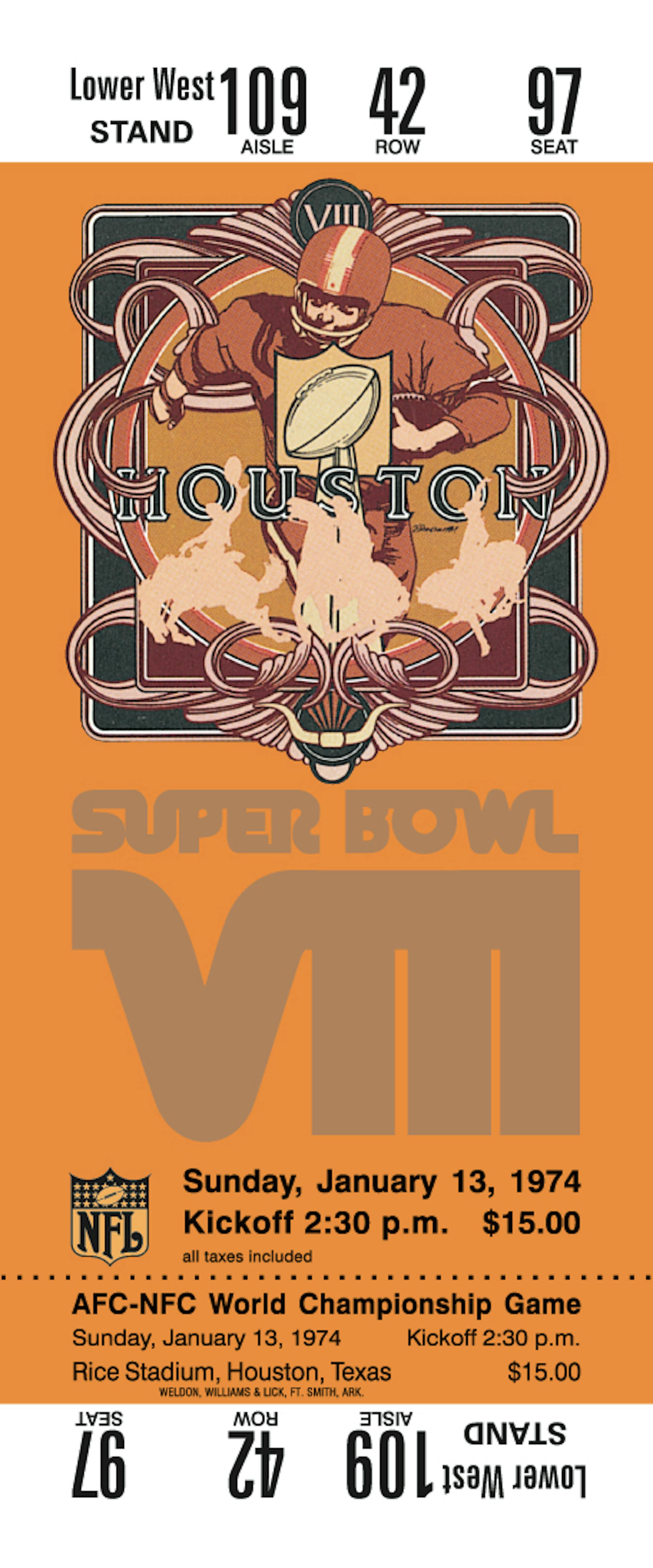 This was the first of four Super Bowls the Vikings appeared in during the ’70s. The ticket was the first to have the words “Super Bowl” printed on it. Prior to 1970, the game was called the AFL-NFL World Championship Game. (The Minnesota Star Tribune)