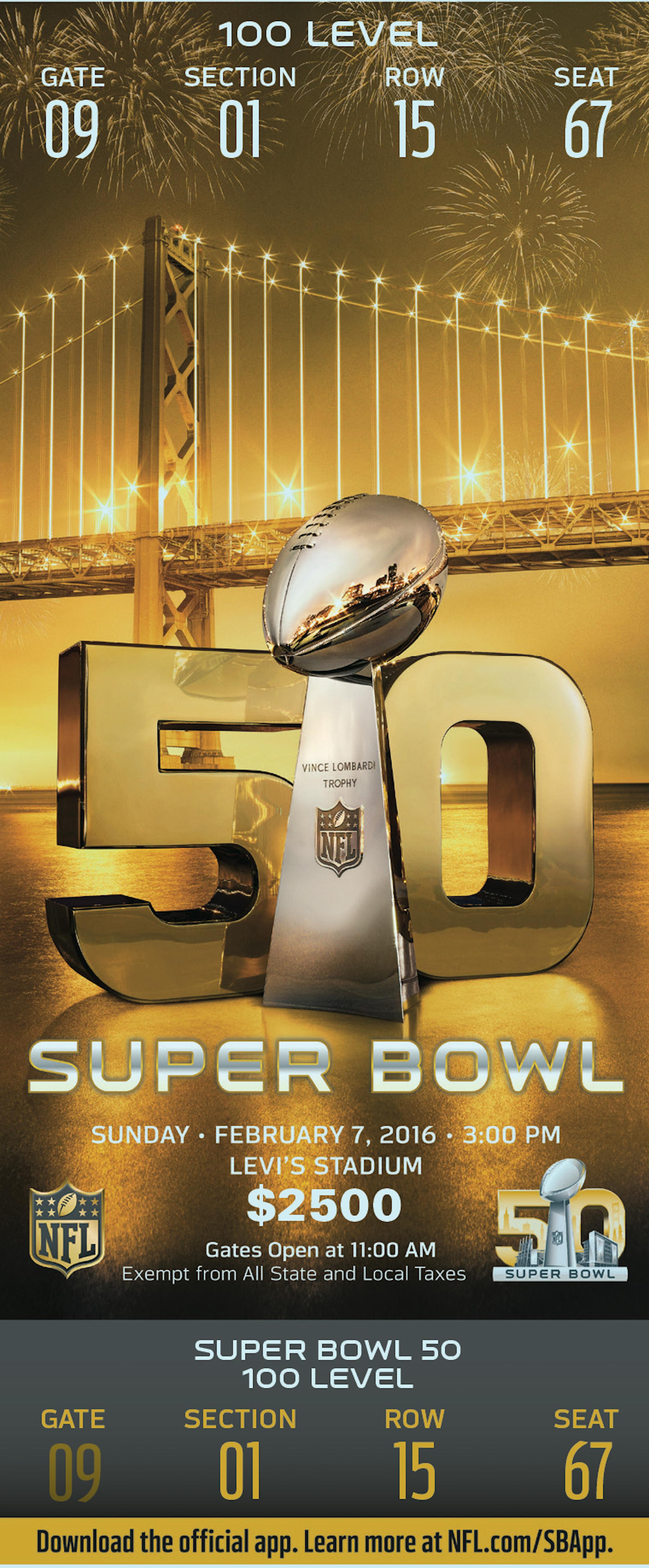 The NFL went through 73 versions of the 2016 ticket before deciding to use “50” instead of traditional Roman numerals. (The Minnesota Star Tribune)