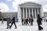People wait outside the Supreme Court in anticipation of key decisions being announced, on Capitol Hill in Washington, Monday, June 17, 2013. With a week remaining in the current Supreme Court term, several major cases are still outstanding that could have widespread political impact on same-sex marriage, voting rights, and affirmative action.
