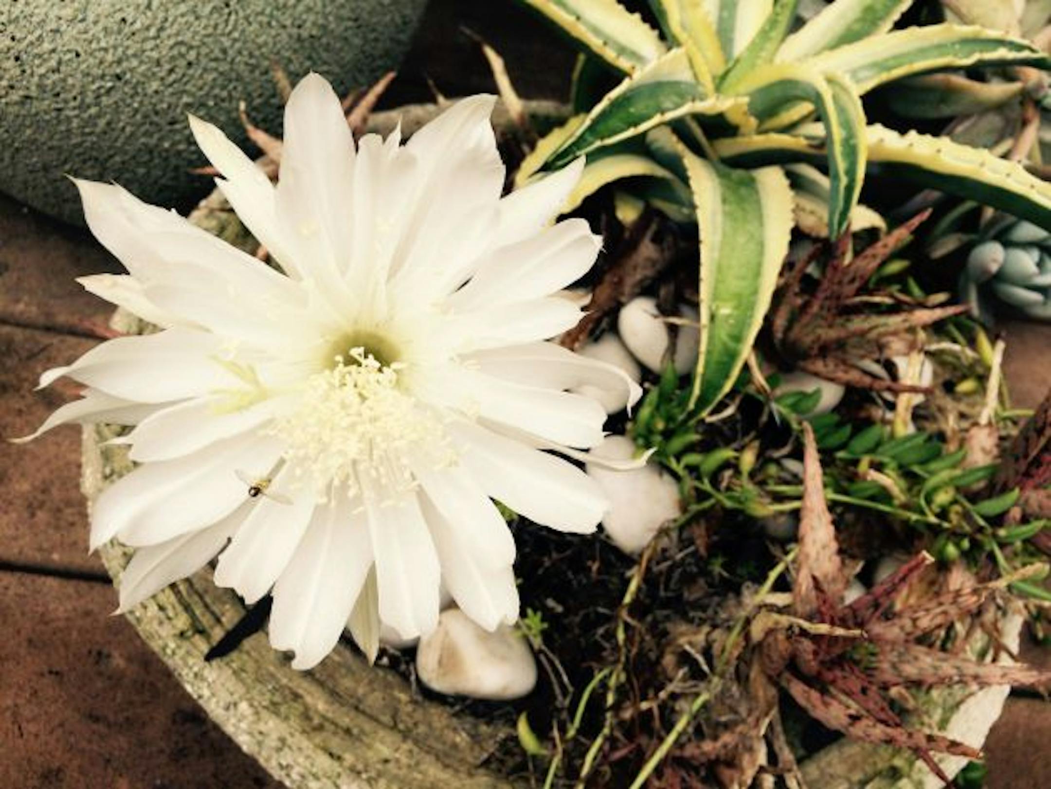 The beautiful white bloom was extremely fleeting. By Sunday afternoon, it had already begun to close. By this morning, it was gone, and its spiny stem was limp and drooping.