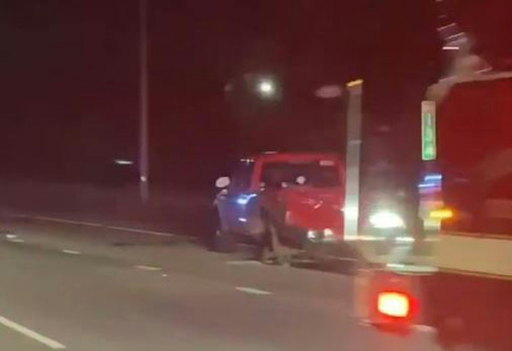 The patrol has yet to say why the pickup was stopped on the highway.