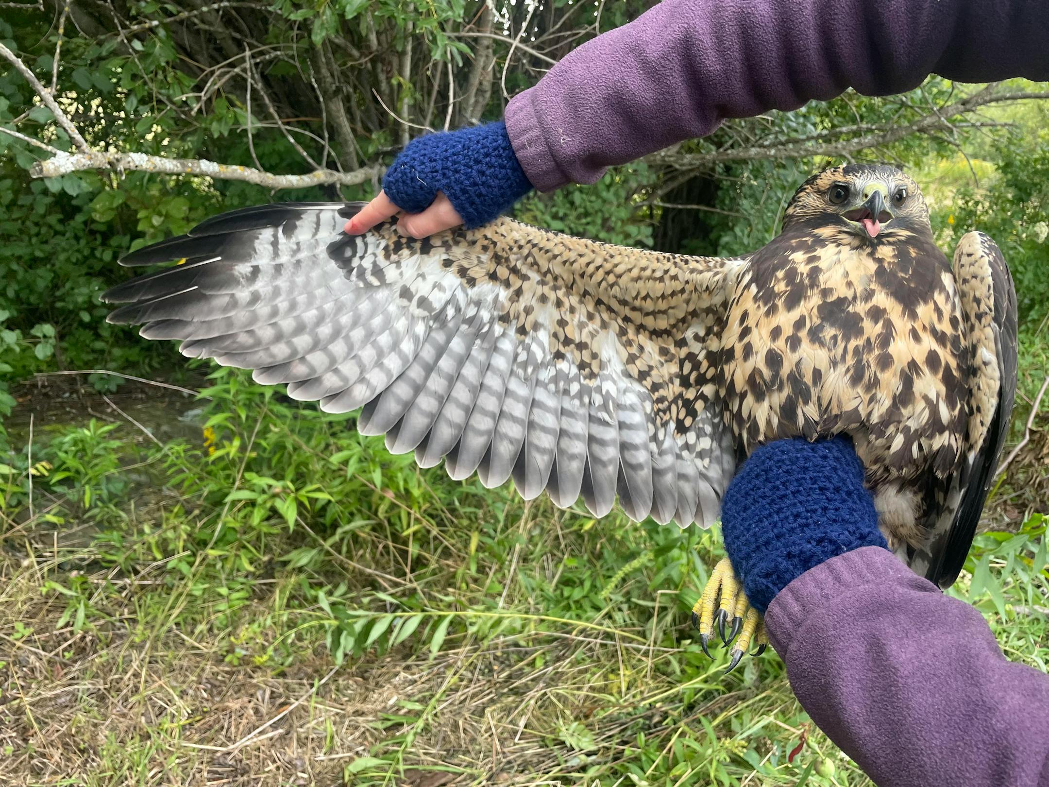 DULUTH – The birding community is atwitter over the banding of a Minnesota-rare Swainson’s hawk at Hawk Ridge Bird Observatory here late last week, blown in by blustery northwest winds.